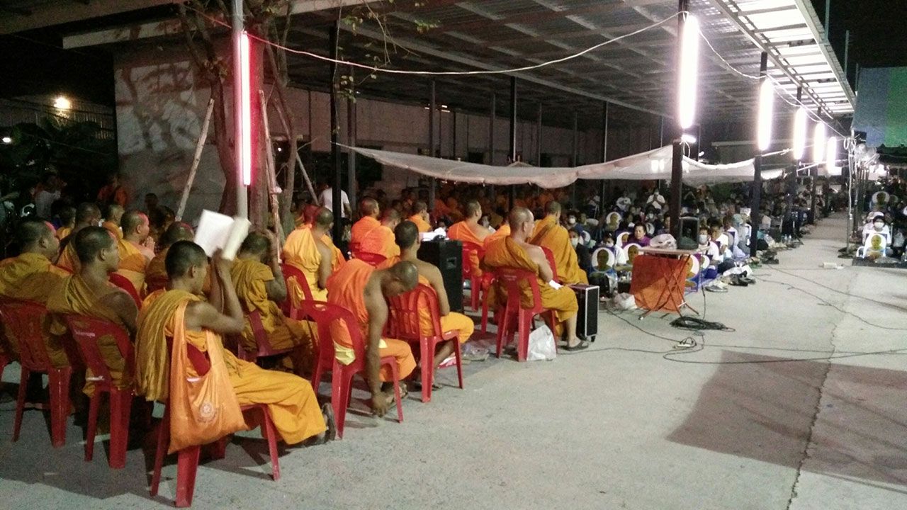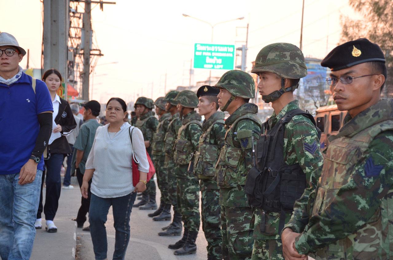 นอกจากนี้ ยังมีกำลังเจ้าหน้าที่ทหาร ประมาณ 50 นาย ยืนหน้ากระดาน ตรึงกำลังริมถนนด้านนอก ป้องกันไม่ให้บรรดาเหล่าศิษยานุศิษย์และพระสงฆ์ ที่รวมตัวนั่งสวดมนต์กันอยู่ที่บริเวณลานตลาดกลางคลองหลวง ฝั่งตรงข้ามกับปากทางเข้าประตู 5 และ 6 ข้ามไปรับคนมาสมทบเพิ่ม.