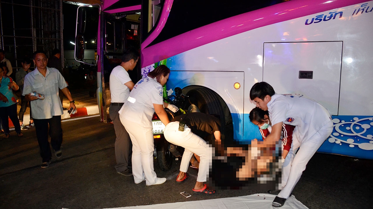เมื่อเวลา 21.30 น.วันที่ 21 ก.พ.2560 พ.ต.ต.สมคิด ภูสด สว.สอบสวน สภ.เมืองเชียงใหม่ ได้รับแจ้งอุบัติเหตุรถทัวร์ชนกับรถจักรยานยนต์ มีผู้เสียชีวิต บริเวณจุดยูเทิร์นหน้าสำนักงานขนส่งจังหวัดเชียงใหม่ (ขาเข้าเมือง) ถนนเชียงใหม่-ฮอด จึงไปสอบสวน พบรถทัวร์ สีขาว-ชมพู ทะเบียน 32-8288 เชียงใหม่ จอดขวางอยู่กลางถนน บริเวณล้อด้านซ้ายมีรถจักรยานยนต์ ฮอนด้า ซูเมอร์เอ็กซ์สีดำ ทะเบียน 1กย 8084 เชียงใหม่ ชนเสียบคารถ สภาพหน้ารถพังยับมีศพหญิงสาว อายุประมาณ 20-25 ปี มีลายสักที่แขนซ้าย ไว้ผมสั้น ข้างศพมีโทรศัพท์ไอโฟน 7 หน้าจอแตกตกอยู่ 1 เครื่อง ค้นในตัวไม่พบหลักฐาน