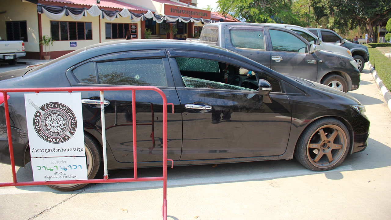 ด้านพ.ต.อ.ศุภเกียรติ กล่าวเพิ่มเติมว่า บริเวณที่เกิดเหตุ พบปลอกกระสุนขนาด 9 มม. จำนวน 9 ปลอก ขนาด 11 มม. 6 ปลอก หัวกระสุนปืน 1 หัว และซองกระสุนปืนตกในที่เกิดเหตุ จึงเก็บไว้เป็นหลักฐาน และพบรถกระบะ ยี่ห้อโตโยต้า สีดำ 4 ประตู ทะเบียน 1 กณ 8246 กทม. ถูกกระสุนปืนจนกระจกด้านหลังคนขับแตก ซึ่งเป็นรถของนายศรายุทธ และรถยนต์เก๋ง ยี่ห้อฮอนด้า ซีวิค สีดำ ทะเบียน 4 กก 8582 กทม. กระจกด้านข้างคนขับแตก และไฟท้ายแตกเสียหาย เป็นของน.ส.อังคนางค์ ซึ่งรอมอบตัวกับเจ้าหน้าที่ตำรวจในที่เกิดเหตุ พร้อมให้การรับสารภาพว่า ใช้อาวุธปืนพกสั้นขนาด .38 ยิงใส่คู่กรณี โดยอ้างว่าใช้อาวุธปืนเพื่อป้องกันตัว