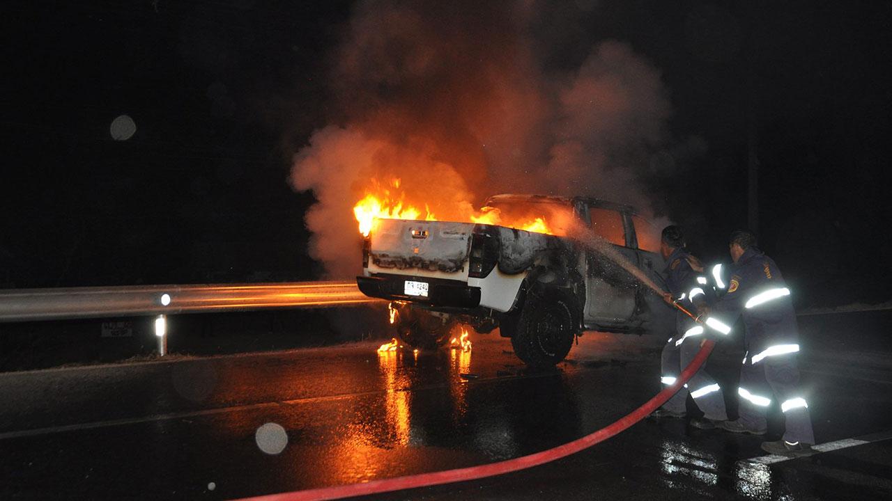 เมื่อเวลา 04.00 น. วันที่ 22 ก.พ.60 ด.ต.ธีระศักดิ์ จันทร์แดง สายตรวจ สภ.เมืองกำแพงเพชร ได้รับแจ้งจากศูนย์วิทยุว่า มีไฟกำลังลุกไหม้รถกระบะ จึงประสานหน่วยกู้ภัยข่าวภาพกำแพงเพชรพร้อมด้วยรถน้ำและเจ้าหน้าที่ดับเพลิงเทศบาลนครชุม ร่วมตรวจสอบ