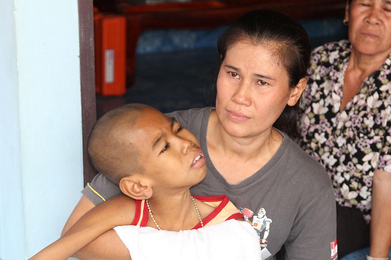 “สงสารลูกมากที่สุดคือเวลาจะกินข้าวแต่ละครั้ง แม่ต้องเคี้ยวข้าวให้ละเอียดแล้วป้อนน้องเฟรม หากแม่ไปทำงานก็จะให้ยายอายุ 70 ปี เป็นผู้ดูแล หากคนอื่นมาเคี้ยวอาหารป้อนน้องเฟรม ก็จะไม่กิน ทุกวันนี้ลำบากมาก ส่วนสามีซึ่งเป็นพ่อของน้องเฟรม เสียชีวิตไป 11 ปีแล้ว ปัจจุบันอยู่กับสามีคนใหม่ที่มีอาชีพรับจ้างเชื่อมเหล็ก รายได้ไม่แน่นอน และยังมีหนี้ที่ต้องผ่อนชำระค่าตู้เชื่อมและอุปกรณ์เชื่อมเหล็กกว่า 50,000 บาท ถึงจะได้รับเบี้ยพิการของน้องเฟรม เดือนละ 800 บาท แต่ก็ไม่เพียงพอ เนื่องจากมีค่าใช้จ่ายเยอะมาก ทั้งค่าผ้าอ้อมสำเร็จรูป ค่าเดินทางไปหาหมอเพื่อตรวจสุขภาพเดือนละ 3 ครั้ง แต่ไม่ว่าเขาจะอยู่ในสภาพไหนก็คือลูก จะเลี้ยงดูกันไปจนกว่าจะตายจากกัน บางครั้งเห็นลูกเงยหน้ามองขึ้นไปบนฟ้า เคยลองถามลูกดูว่ามองฟ้าทำไมหนูอยากตายหรือเปล่า ลูกก็พยักหน้าและร้องไห้ คิดว่าเขาคงสงสารเราและไม่อยากอยู่ในสภาพแบบนี้” นางบุญเรียม เล่าทั้งน้ำตา