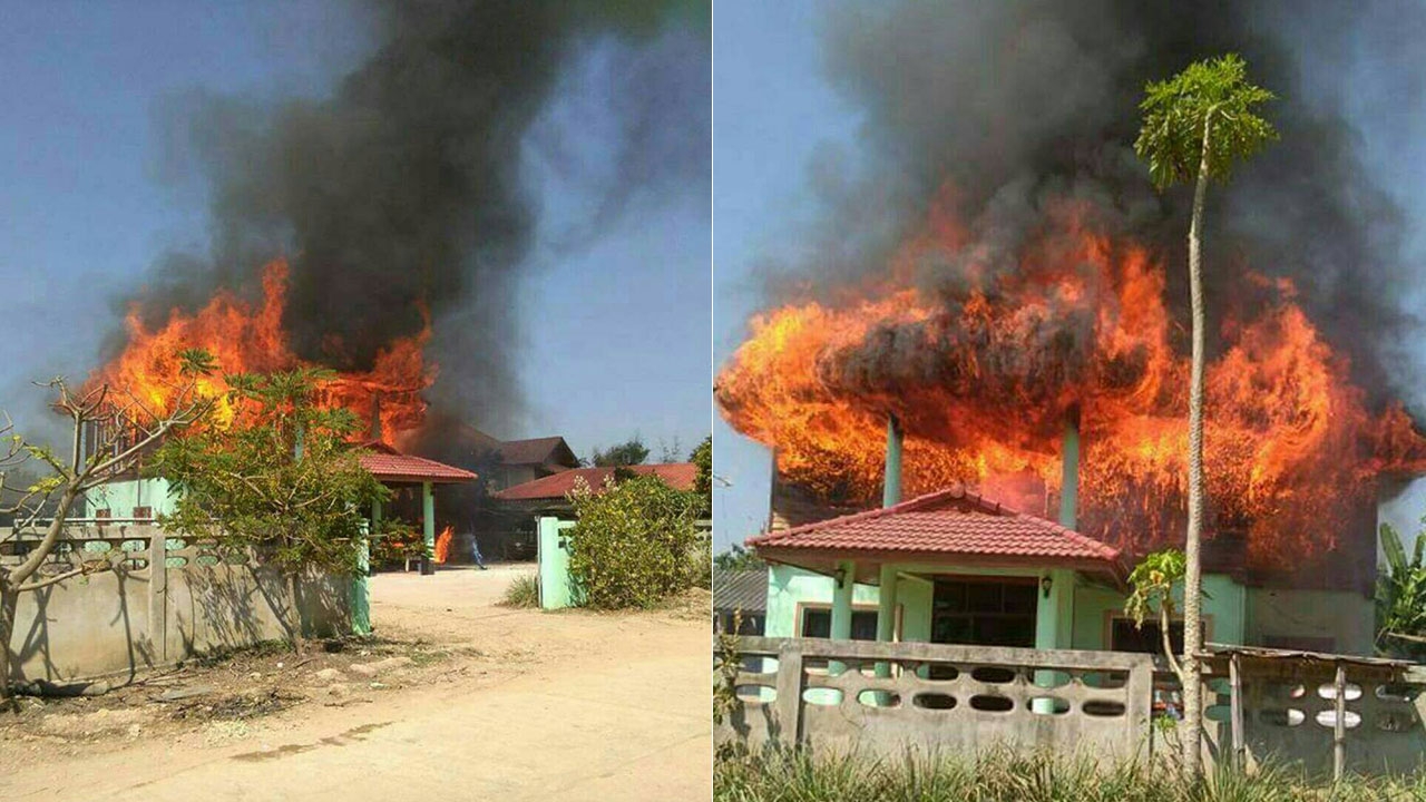 คัตเอาต์ช็อต ไฟไหม้บ้านทั้งหลังลุกลามเก๋ง 1 คัน เฒ่าเชียงรายเจ้าของบ้านนอนป่วย โชคดีลูกสาวเพิ่งกลับจากต่างประเทศพาหนีทัน สูญกว่า 2 ล้านบาท