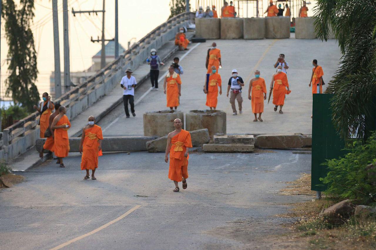 ยังไม่จบง่ายๆ พระ-ลูกศิษย์ธรรมกาย นำท่อปูน แท่งคอนกรีตขนาดใหญ่ กั้นขวางแนวถนน ขึงสแลนกันแดดนั่งสวดมนต์เตรียมรับมือ ขณะที่ ทหาร-ตำรวจ ปิดทางเข้าถนนเลียบคลอง 3 ด้านถนนบางขันธ์-หนองเสือ ห้ามรถทุกชนิดผ่าน