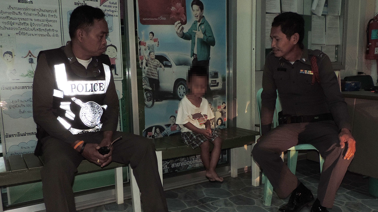นายบรรยาย คำเมืองเม็ก รปภ.ธนาคาร ธ.ก.ส. กล่าวว่า ขณะเข้าเวรรักษาความปลอดภัยอยู่หน้าธนาคาร ตนมองออกไปบนถนนก็เห็นเด็กวิ่งข้ามถนนมาพอดี ขณะนั้นมีรถกระบะบรรทุกน้ำขวดพร้อมดื่มแล่นมาแล้วเบรกอย่างกะทันหันเกือบจะชนเด็กเข้าให้ คนขับรถเดินลงมาแล้วจูงมือเด็กมาหาตนให้ช่วยตามหาว่าเป็นลูกใคร อยู่ที่ไหน ตนจึงได้แจ้งเจ้าหน้าที่ตำรวจ จากนั้นจึงช่วยกันพูดให้เด็กคลายกังวล และขอให้ชี้ว่าบ้านอยู่ไหน