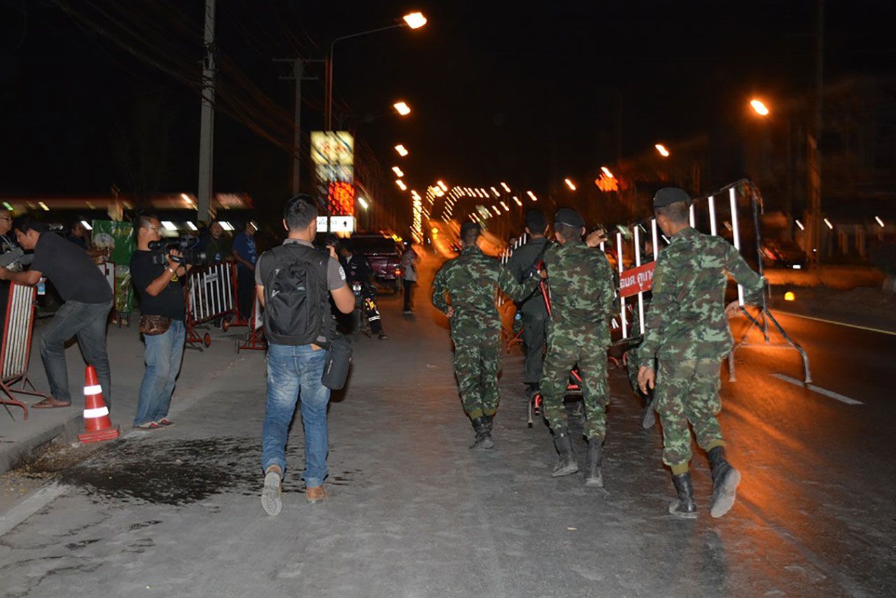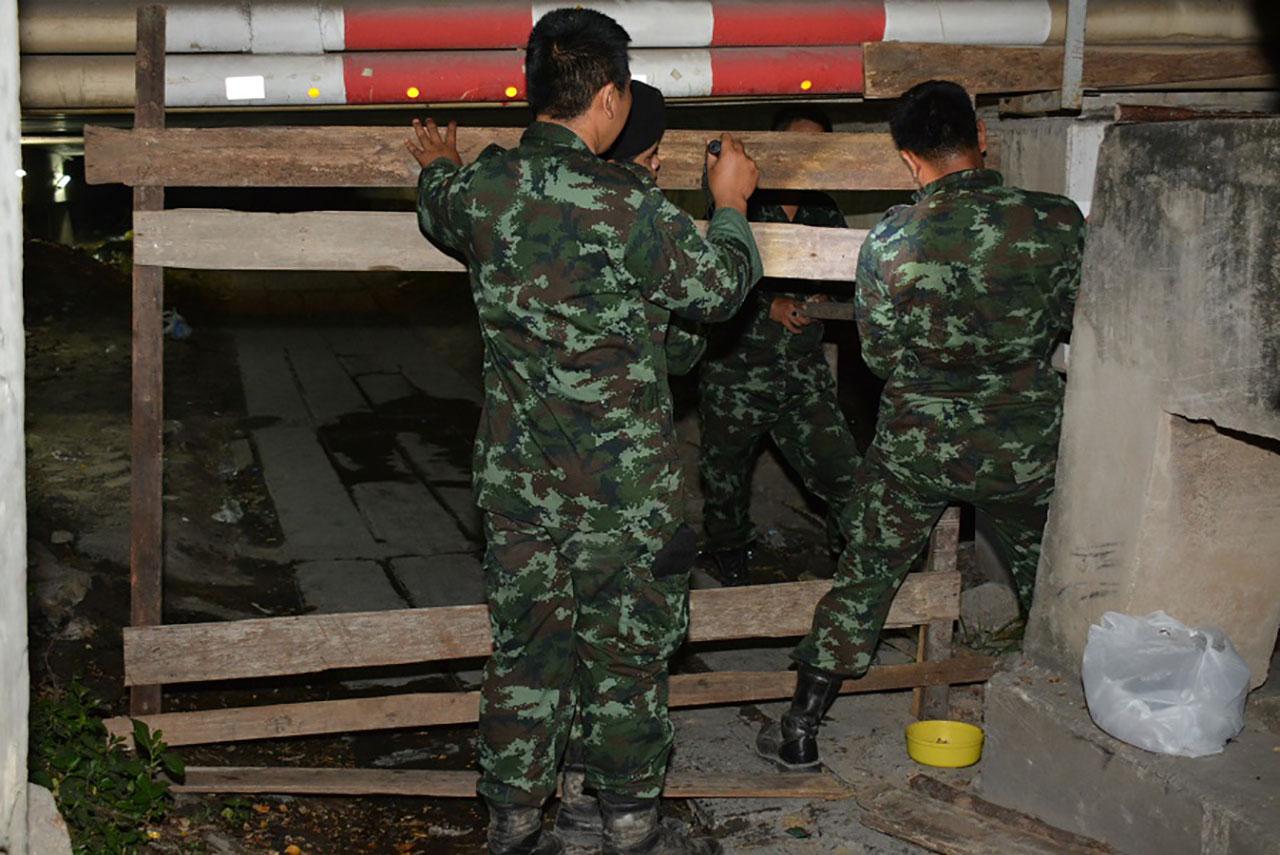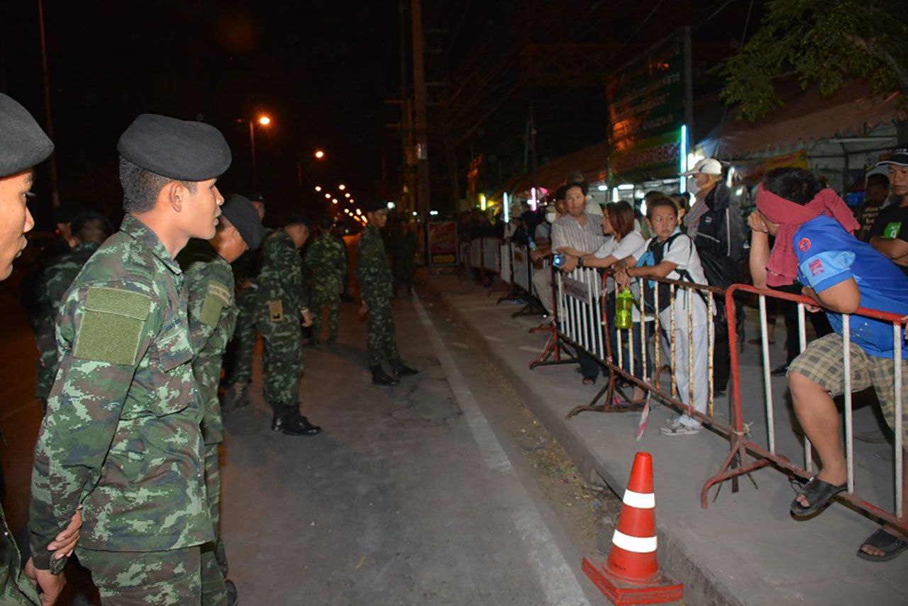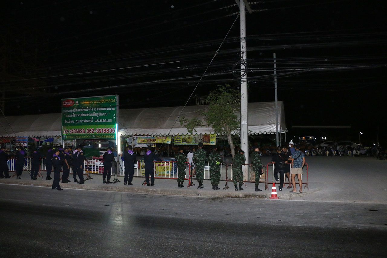 เมื่อเวลา 00.15 น.วันที่ 24 ก.พ. ผู้สื่อข่าวรายงานว่า ทางเจ้าหน้าที่ทหารจาก ร.12 พัน.1 รอ.และเจ้าหน้าที่ตำรวจ ตชด.ได้นำรั้วเหล็กจากเกาะกลางถนนมาตั้งวางเป็นแนว ตั้งแต่สะพานข้ามคลองแอน ถนนบางขันธ์-หนองเสือ ฝั่งตลาดกลางคลองหลวง ซึ่งอยู่ตรงข้ามกับทางเข้าวัดพระธรรมกาย ด้านประตู 5-6 เป็นแนวยาวไปจนถึงปั้มเอสโซ่ ประมาณ 200 เมตร โดยภายในตลาดมีกลุ่มพระและลูกศิษย์วัดพระธรรมกาย กว่า 500 คน นำเต็นท์หลายหลังมากางปักหลักสวดมนต์มาต่อเนื่องหลายวัน