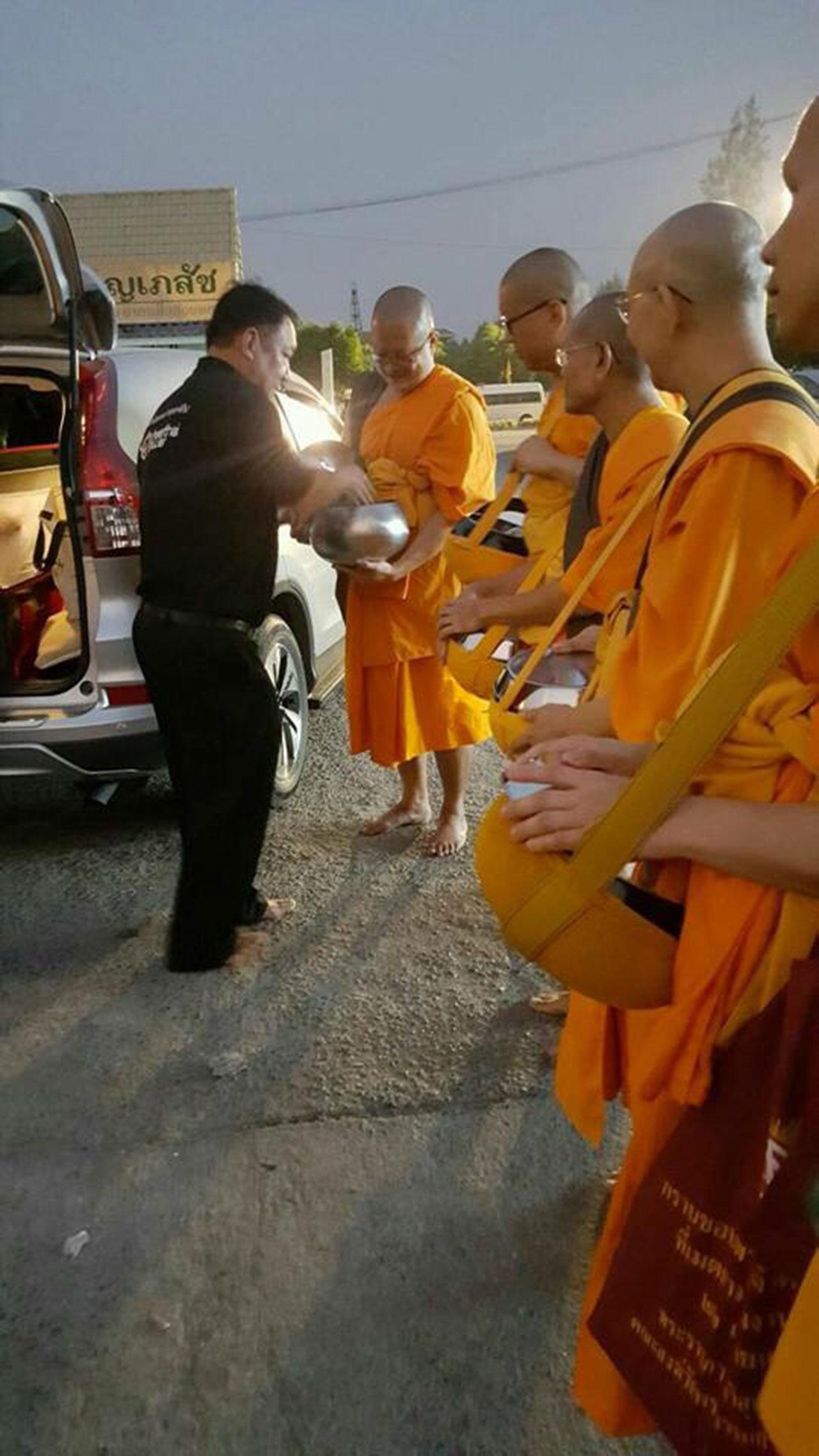 ทั้งนี้ พระภิกษุทุกรูปที่ออกมารับบาตร จะต้องเดินเท้าออกมาจากด้านในวัด และหากรับบาตรเสร็จแล้ว ตำรวจจะคอยช่วยถือสิ่งของที่ประชาชนนำมาใส่บาตร กลับเข้าไปที่จุดคัดกรองภายใน เพื่อตรวจสิ่งของต้องห้ามที่ไม่สามารถให้นำเข้าไปได้ ซึ่งประตู 7 นี้ จะเป็นประตูที่เจ้าหน้าที่อนุญาตให้พระของวัดที่ออกไปบิณฑบาต สามารถกลับเข้ามาในวัดที่ประตูนี้ได้เพียงประตูเดียว