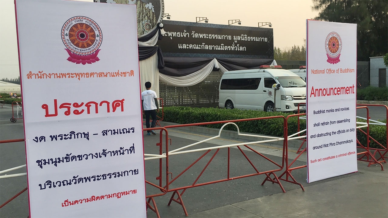 สำนักงานพระพุทธศาสนาแห่งชาติ ติดป้ายประกาศ 3 ภาษา หน้าวัดพระธรรมกาย ห้ามพระ-เณร ร่วมชุมนุม ถือเป็นความผิดตามกฎหมาย ...