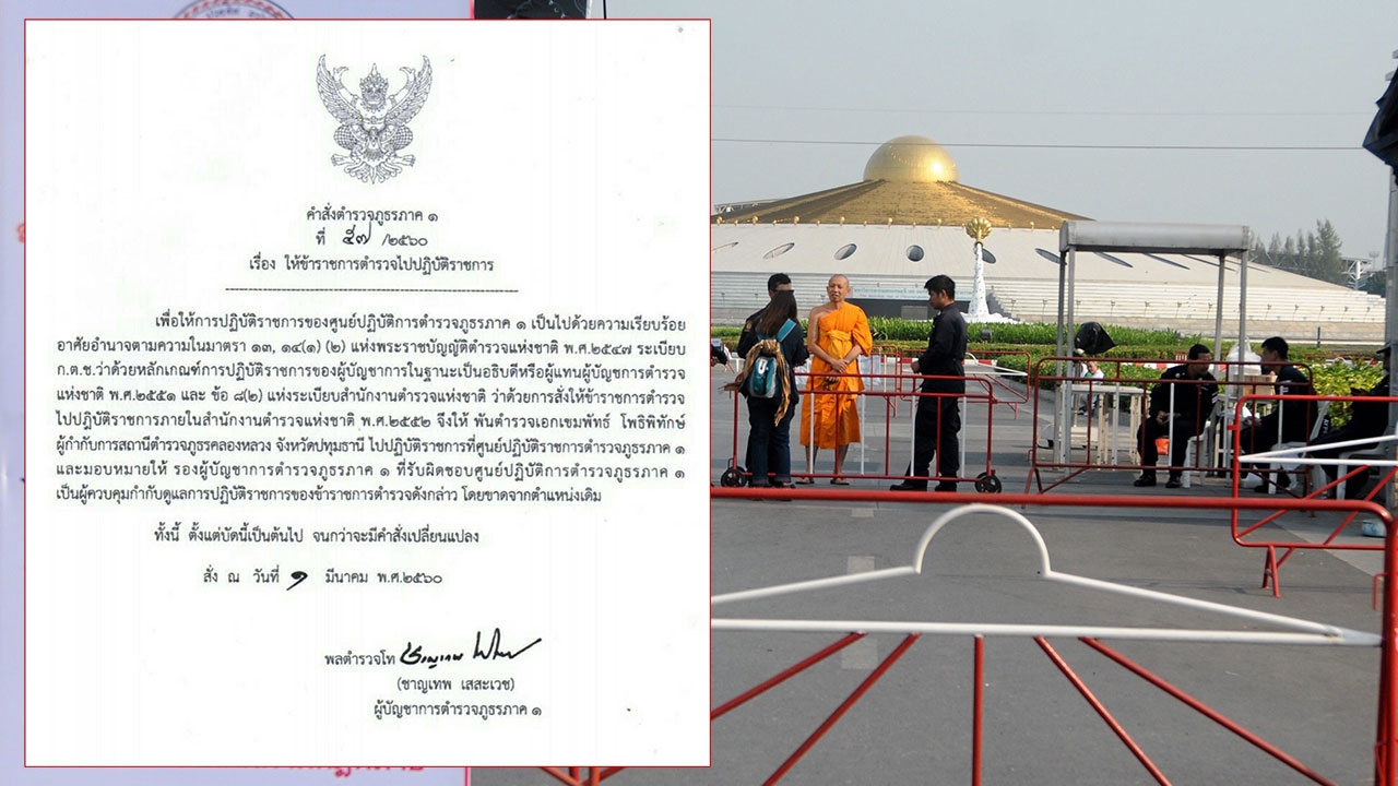 ผบช.ภ.1 ลงนามในคำสั่งให้ ผกก.สภ.คลองหลวง จ.ปทุมธานี ที่ดูแลพื้นที่วัดพระธรรมกาย ไปปฏิบัติหน้าที่ที่ศูนย์ปฏิบัติราชการตำรวจภูธรภาค 1 โดยให้ขาดจากตำแหน่งเดิม...