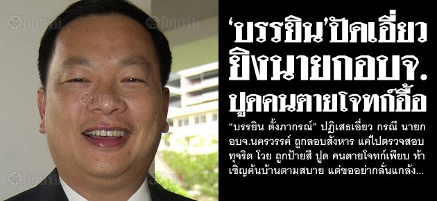“บรรยิน ตั้งภากรณ์” ปฏิเสธเอี่ยว กรณี นายก อบจ.นครวรรค์ ถูกลอบสังหาร แค่ไปตรวจสอบทุจริต โวย ถูกป้ายสี ปูด คนตายโจทก์เพียบ ท้า เชิญค้นบ้านตามสบาย แต่ขออย่ากลั่นแกล้ง...
