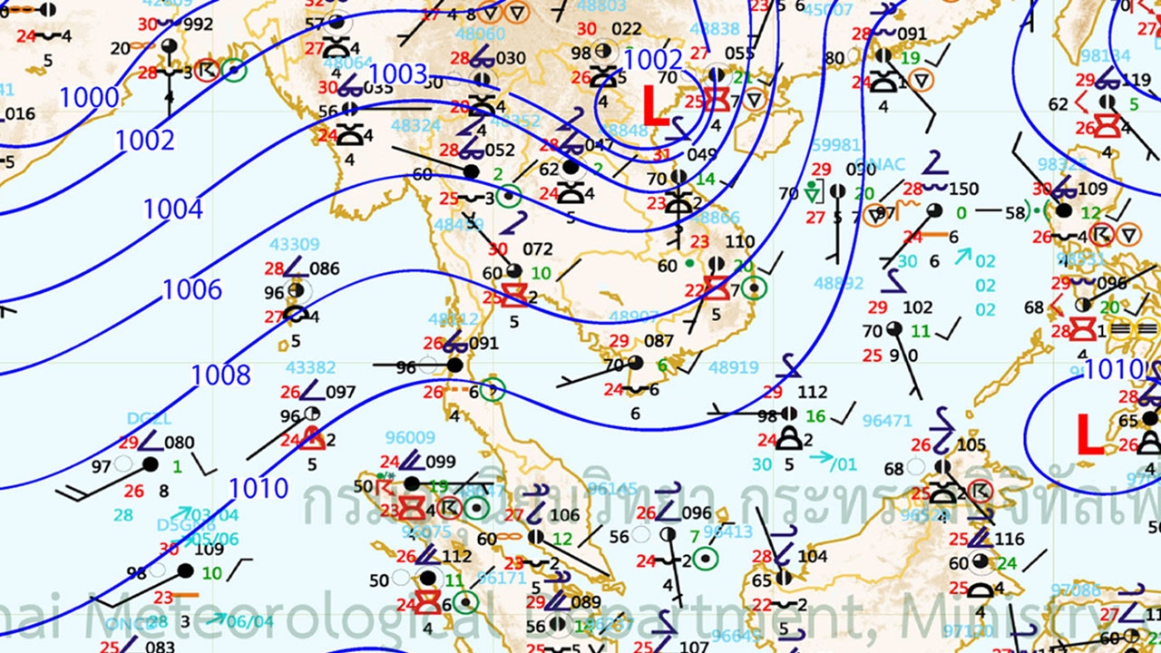 พยากรณ์อากาศสำหรับประเทศไทยตั้งแต่เวลา 06:00 วันนี้ ถึง 06:00 วันพรุ่งนี้