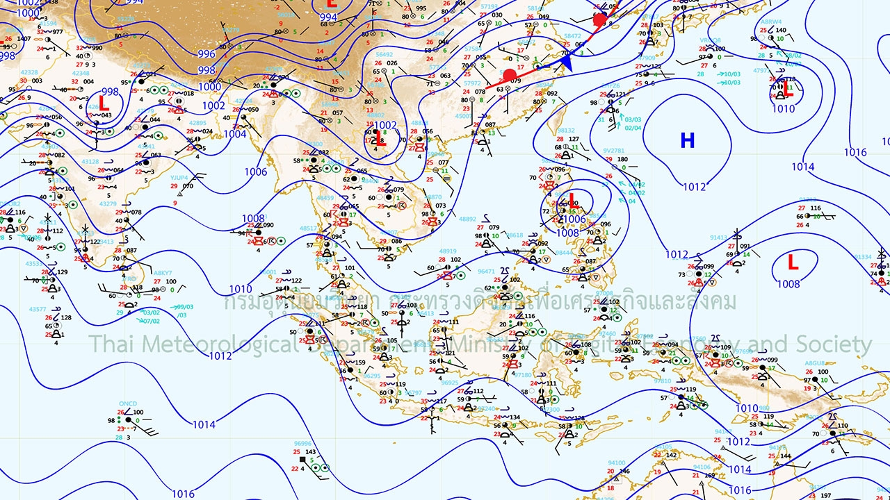 พยากรณ์อากาศสำหรับประเทศไทยตั้งแต่เวลา 06.00 วันนี้ ถึง 06.00 วันพรุ่งนี้.