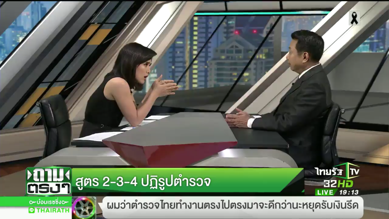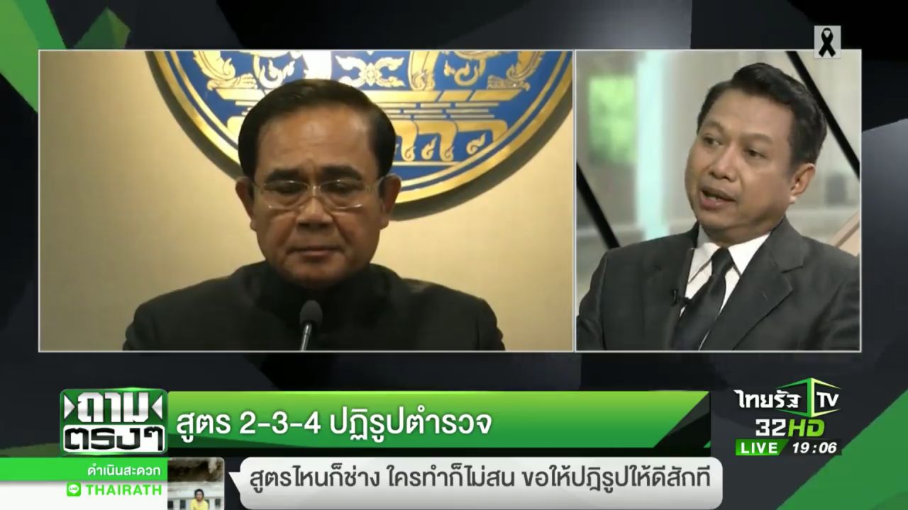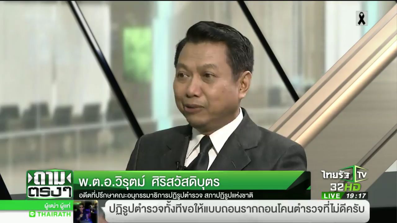 พ.ต.อ.วิรุตม์ ศิริสวัสดิบุตร อดีตที่ปรึกษาคณะอนุกรรมาธิการปฏิรูปตำรวจ สภาปฏิรูปแห่งชาติ ให้สัมภาษณ์ในรายการถามตรงๆ กับจอมขวัญ หลาวเพ็ชร์ กรณีการปฏิรูปตำรวจ ที่นายกรัฐมนตรีให้ใช้สูตร 2-3-4 พร้อมตั้ง 3 โจทย์ใหญ่ โดยจะมีการประชุมคณะกรรมการปฏิรูป 36 ท่าน ส่วนที่นายกรัฐมนตรีพูดนั้น เชื่อว่าเพื่อต้องการให้เกิดการเปลี่ยนแปลง เพียงแต่ให้แนวความคิดไม่ได้ก้าวก่ายคณะกรรมการ ซึ่งจะเริ่มประชุมนัดแรกในวันพรุ่งนี้ (12 ก.ค. 60)