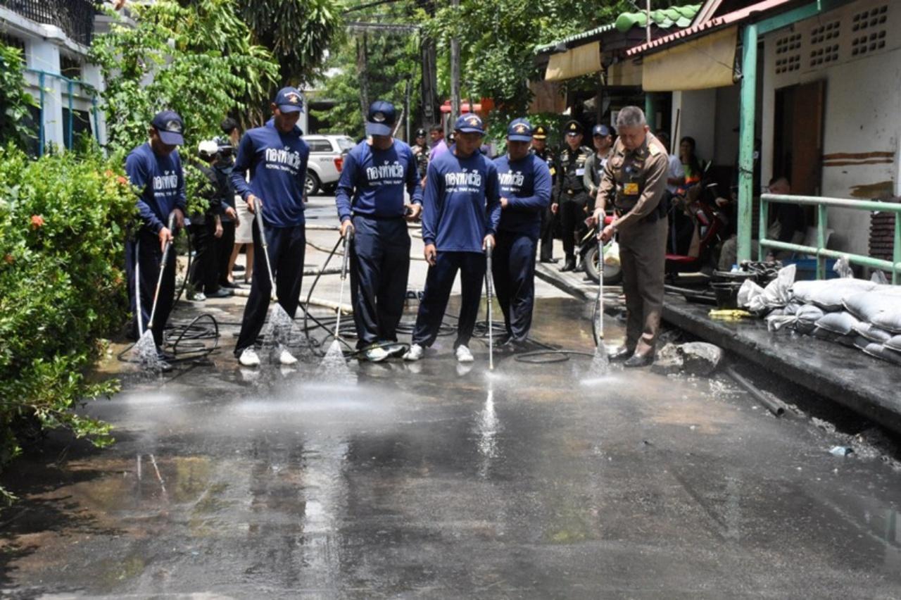 เมื่อวันที่ 21 – 22 มิถุนายน ที่ผ่านมา ทรงพระกรุณาโปรดเกล้าโปรดกระหม่อมให้ หน่วยทหารมหาดเล็กราชวัลลภรักษาพระองค์ ข้าราชบริพารในพระองค์ หน่วยราชการในพื้นที่ และประชาชนจิตอาสา “เราทำความ ดี ด้วยหัวใจ” ทำการช่วยเหลือและบรรเทาความเดือดร้อนจากปัญหาน้ำท่วมขังในพื้นที่ชุมชนสุโขทัย ซอย 9 (คลองส้มป่อย) ซึ่งเป็นพื้นที่อยู่บริเวณด้านทิศเหนือข้างพระราชวังดุสิต ที่ประสบปัญหาความเดือดร้อนจากน้ำท่วมขัง มีดินเลนและขยะมูลฝอยทับถมเป็นเวลานาน เกิดปัญหาน้ำเน่าเสียส่งกลิ่นเหม็นบั่นทอนสุขภาพของประชาชนในชุมชน