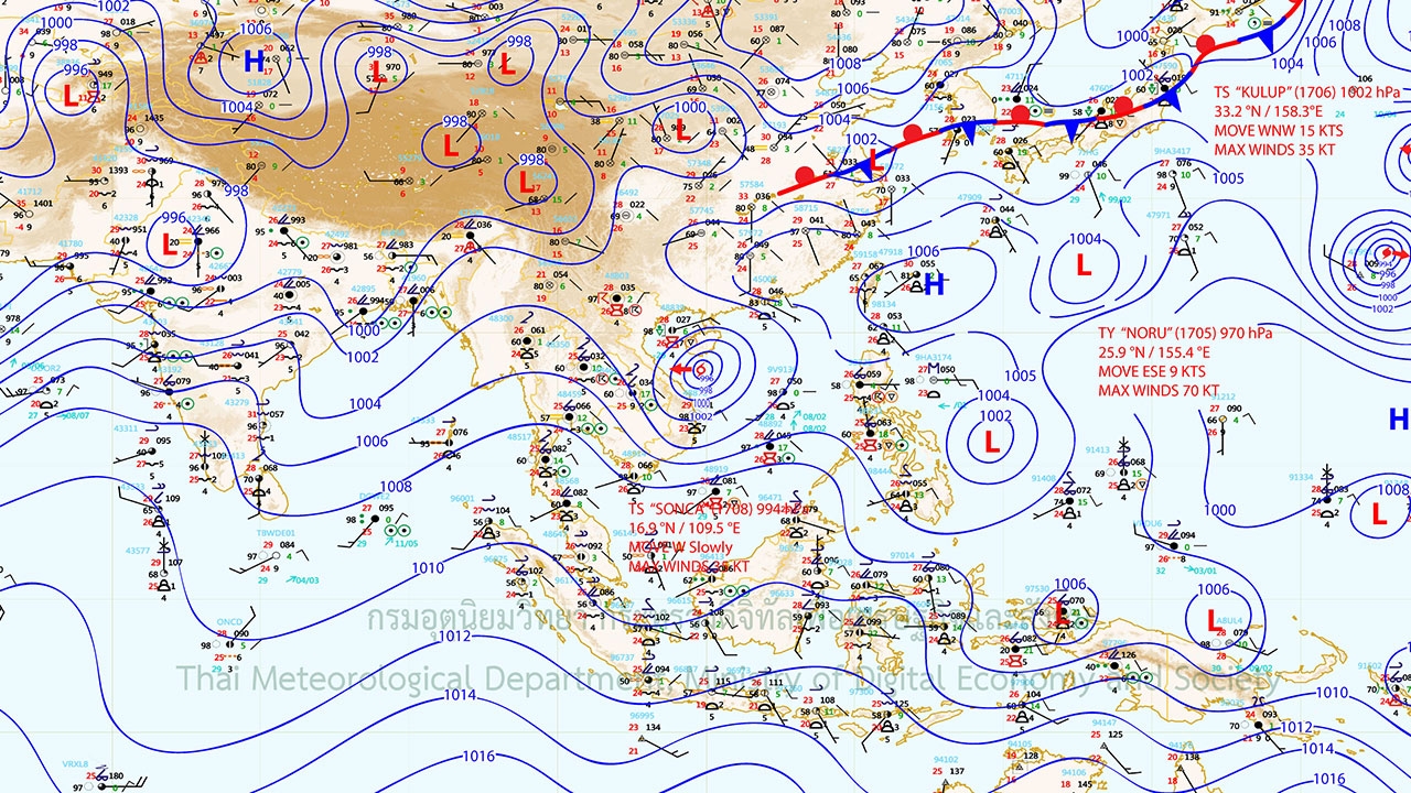 เมื่อวันที่ 25 ก.ค.2560 กรมอุตุนิยมวิทยา รายงานพยากรณ์อากาศ 24 ชั่วโมงข้างหน้า ประเทศไทยตอนบนมีฝนตกชุกหนาแน่นและมีฝนตกหนักบางแห่งในภาคเหนือ ภาคตะวันออกเฉียงเหนือ และภาคตะวันออก สำหรับทะเลอันดามันและอ่าวไทยตอนบนคลื่นสูง 2-3 เมตร ขอให้ประชาชนบริเวณดังกล่าวระวังอันตรายจากฝนตกหนักและฝนที่ตกสะสมไว้ด้วย ส่วนชาวเรือควรเดินเรือด้วยความระมัดระวังและเรือเล็กบริเวณทะเลอันดามันควรงดออกจากฝั่งจนถึงวันที่ 29 กรกฎาคม 2560 นี้