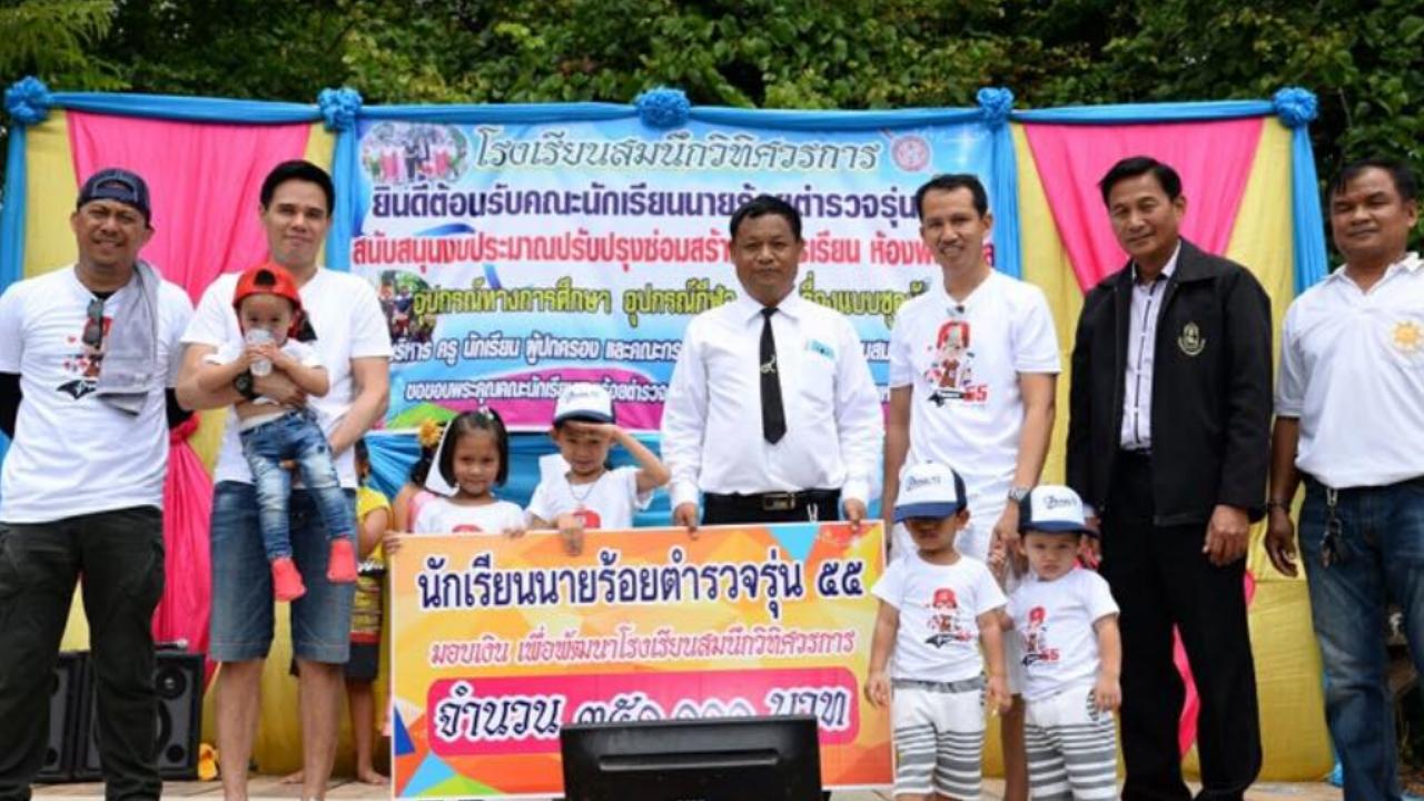 รอง ผกก.ป.สน.ลุมพินี พร้อมด้วยนักเรียนนายร้อยรุ่น 55 พร้อมครอบครัว ร่วมบูรณะต่อเติมพัฒนาโรงเรียนของสมเด็จย่า ที่ อ.สวนผึ้ง จ.ราชบุรี เพื่อถวายเป็นพระราชกุศลแด่พระบาทสมเด็จพระเจ้าอยู่หัว รัชกาลที่ 9 มอบทุนการศึกษา อุปกรณ์กีฬา
