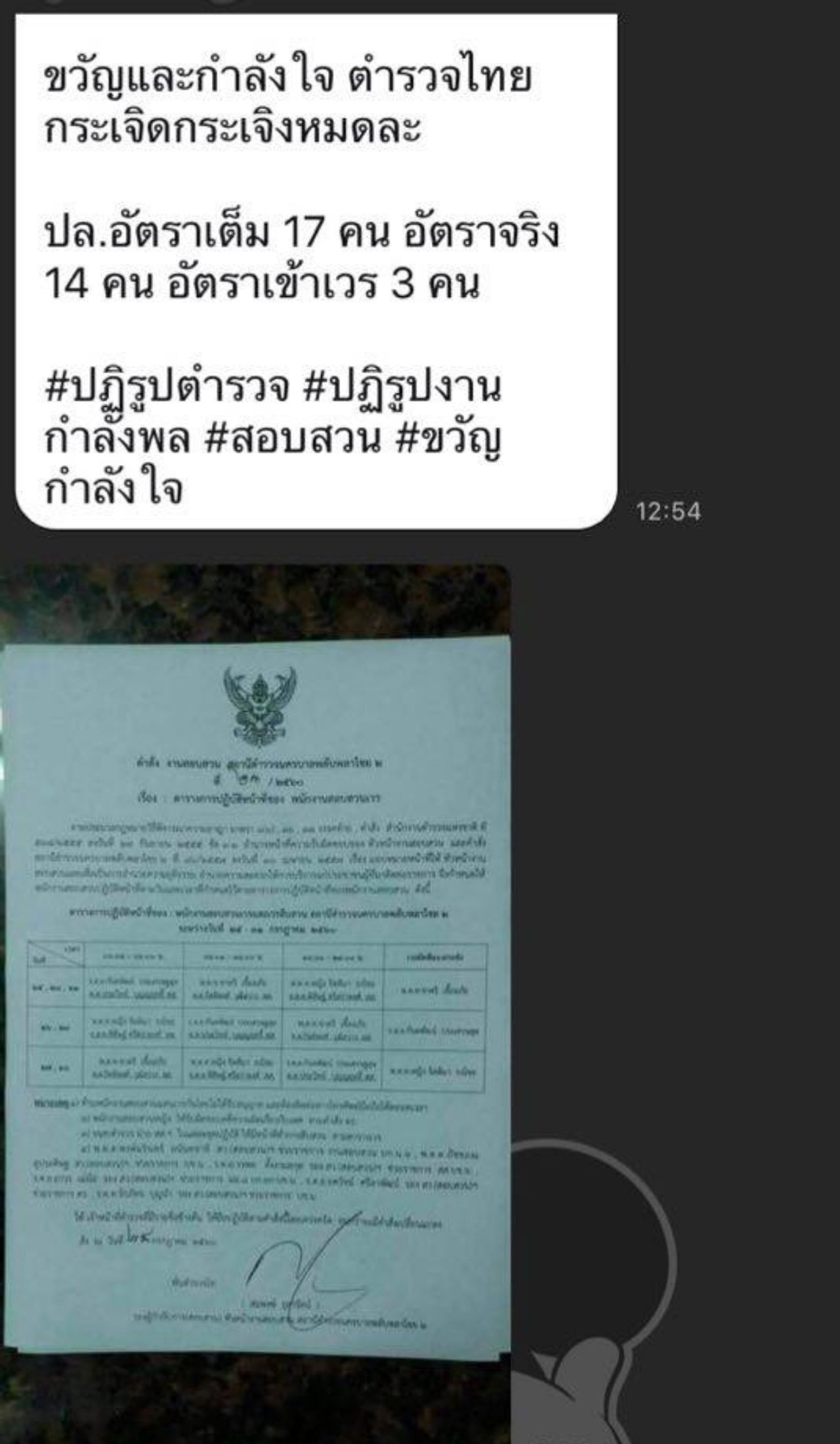 เป็นกระแสสังคมที่จุดติดขึ้นมาทันที เมื่อมีจดหมายร้องถึงผู้มีอำนาจในสำนักงานตำรวจแห่งชาติ กรณีพนักงานสอบสวนหญิงรายหนึ่ง เขียนระบายถึงความเหนื่อยหน่ายเพราะตำแหน่งพนักงานสอบสวนขาดแคลนอย่างหนัก พร้อมโชว์เอกสาร สน.พลับพลาไชย 2 ระบุตารางเข้าเวรมีตำรวจผลักกันแค่ 3 คน เพราะตำรวจรายอื่นๆย้ายหนีหมด โดยข้อความที่เขียนไว้ว่า ....