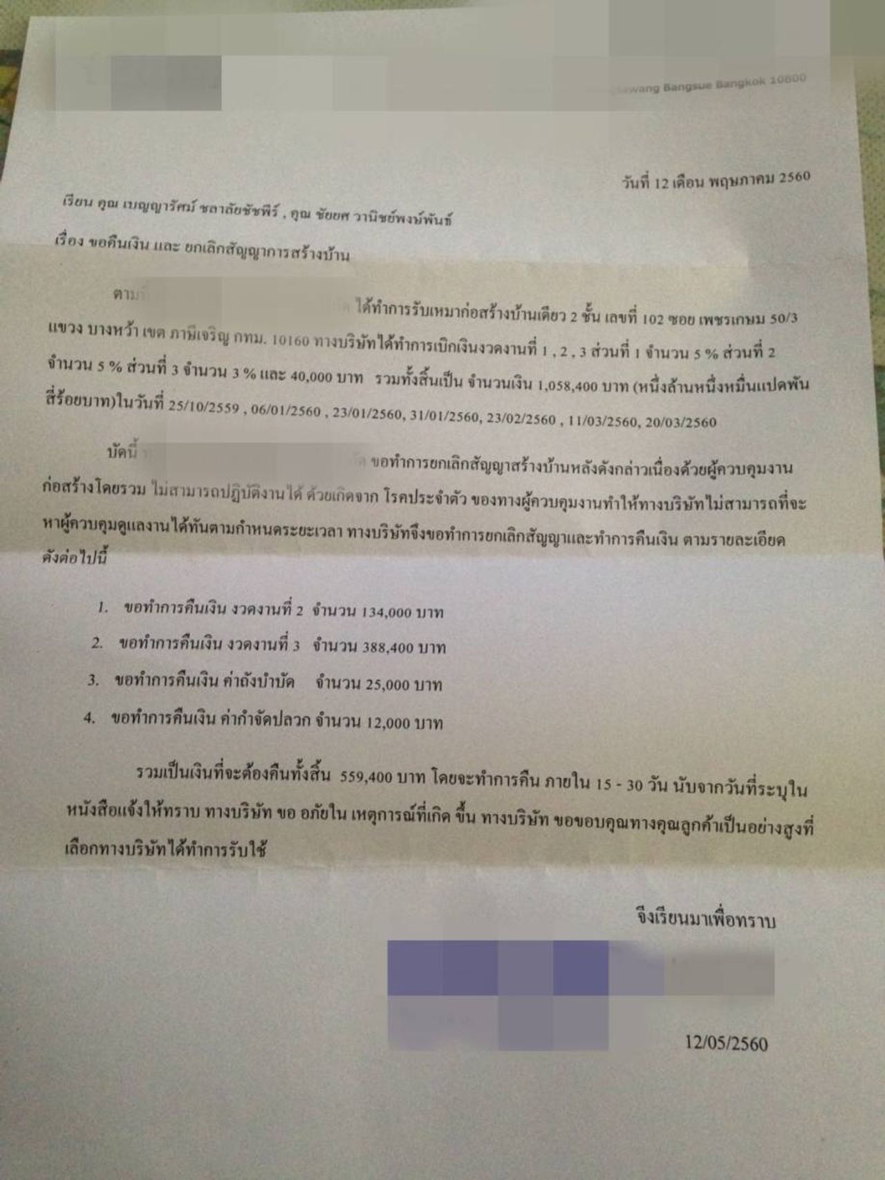 คุณเบียร์ อธิบายว่า ตามหนังสือที่เขายื่นมาให้นั้น ระบุว่า จะต้องคืนเงินทั้งหมด จำนวน 559,400 บาท ภายในวันที่ 12 มิ.ย. แต่พอถึงเวลาเขาก็ขอเลื่อน ซึ่งก็มีการเลื่อนกำหนดเรื่อยๆ ซึ่งถึงตอนนี้ก็ถือว่าเลื่อนมานานเกินไปแล้ว