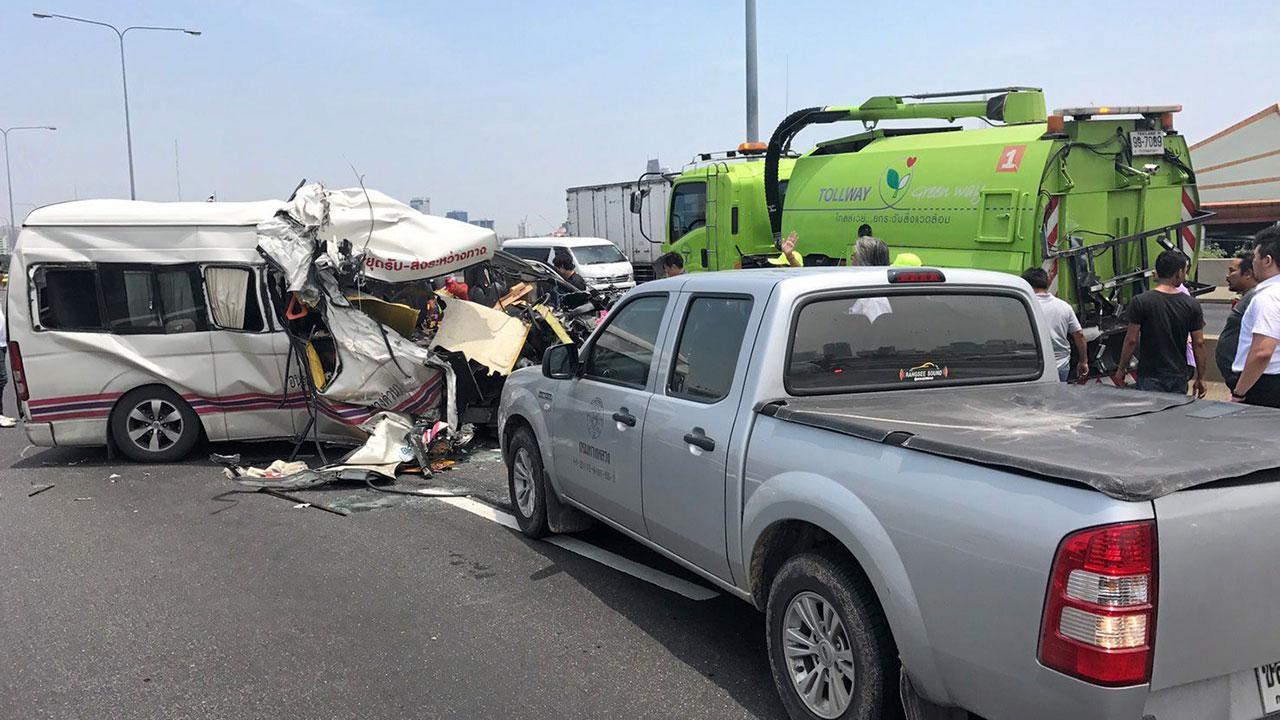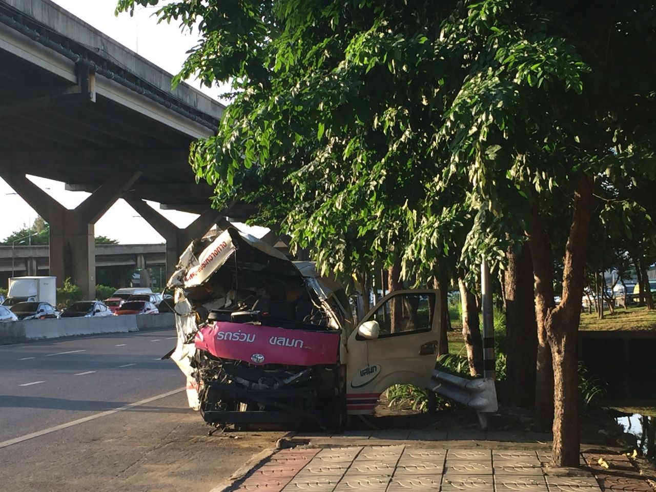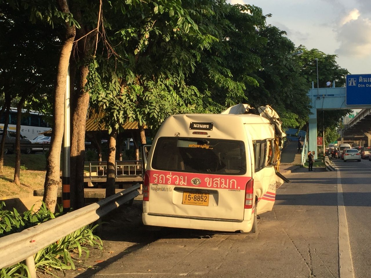 ทีมข่าวไทยรัฐออนไลน์ ไขปริศนาความสงสัยดังกล่าว โดยที่มาของรถสุดยับเยินคันนี้ เกิดขึ้นเมื่อเวลา 11.30 น. ของวันที่ 22 พ.ค. มีรถตู้โดยสาร ยี่ห้อโตโยต้า สีขาว หมายเลขทะเบียน 15-8852 กรุงเทพมหานคร สาย ต.155-16 วิ่งระหว่างอนุสาวรีย์ชัยสมรภูมิ-นวนคร (ทางด่วน) ประสบอุบัติเหตุ พุ่งชนท้ายรถดูดฝุ่นทำความสะอาดบนทางด่วนยกระดับอุตราภิมุข หรือดอนเมืองโทลล์เวย์ ขาเข้าช่วงก่อนลงถนนดินแดง เป็นเหตุให้มีผู้เสียชีวิต 2 ราย และยังมีผู้ได้บาดเจ็บอีกจำนวนหนึ่ง