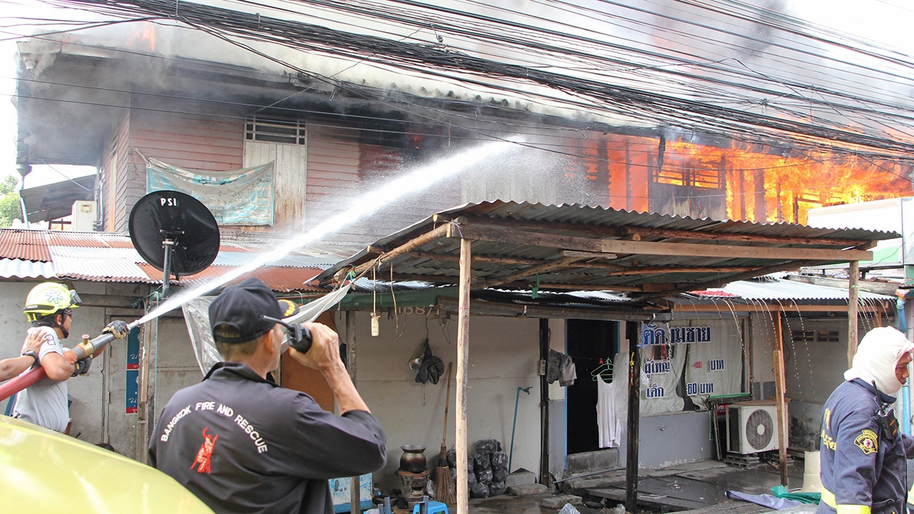 เพลิงผลาญบ้านพักพนักงานรถไฟ กม.11 ชาวบ้านหอบข้าวของหนีวุ่น เจ้าหน้าที่ใช้เวลาครึ่งชั่วโมงถึงสกัดอยู่ บ้านเรือนที่ส่วนใหญ่เป็นไม้ปลูกสร้างดั้งเดิมกว่า 30 ปี วอดไป 15 หลัง โชคดีไม่มีเจ็บตาย ด้านตำรวจอยู่ระหว่างตรวจสอบหาบ้านต้นเพลิง ตั้งปมไว้ 2 ประเด็น ประมาทเพราะเป็นวันสารทจีน อาจจุดธูปเทียนไหว้บรรพบุรุษแล้วเผอเรอ กับปมไฟฟ้าช็อต