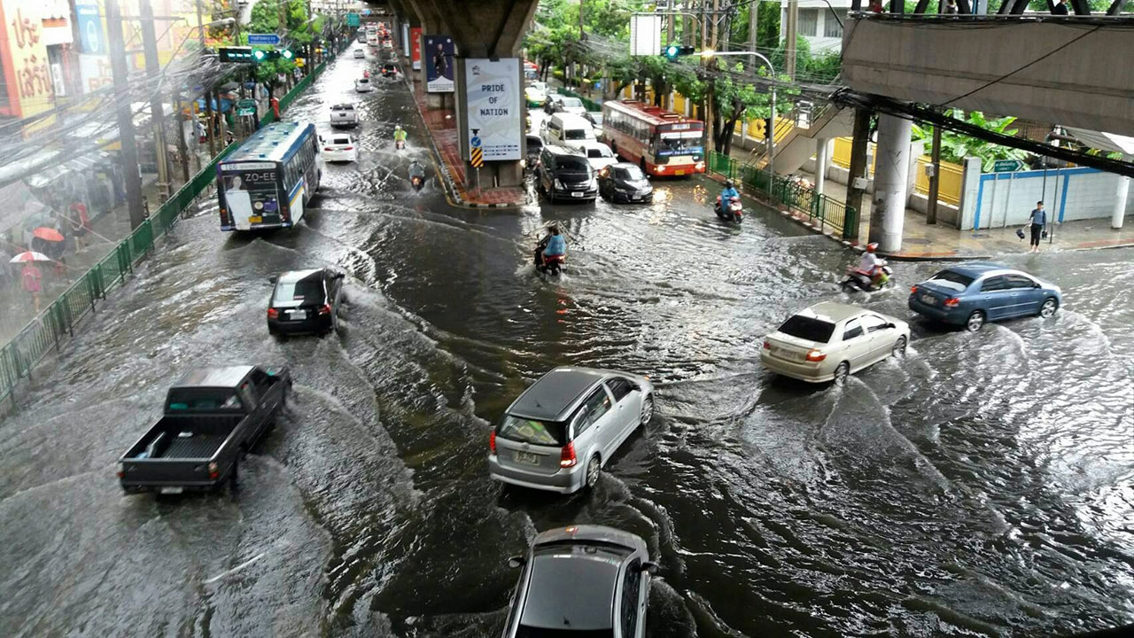 สภาพน้ำท่วมถนนรามคำแหง ทั้งขาเข้าขาออก ตั้งแต่หน้า ม.รามคำแหง ถึงหน้าห้าง บิ๊กซี ซอยรามคำแหง 24 สูงท่วมทางเท้า หลังฝนกระหน่ำลงมาอย่างหนัก วัดปริมาณฝนสะสมที่เขตวังทองหลางได้ถึง 87 มม. และเกิดไฟฟ้าดับที่สถานีสูบน้ำอุโมงค์พระราม 9 กว่า 1 ชั่วโมง ส่งผลให้การระบายน้ำเป็นไปด้วยความล่าช้า.
