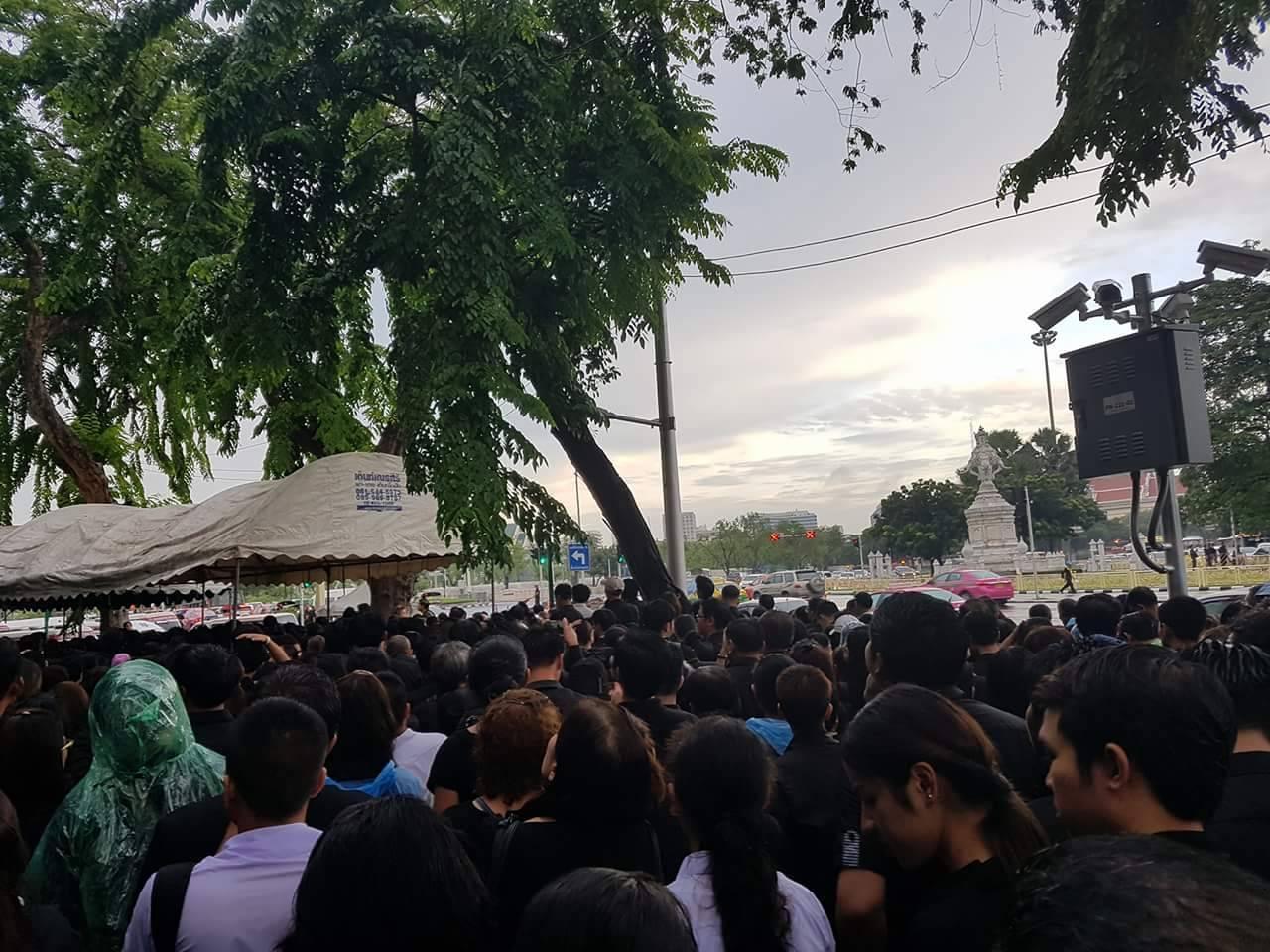 ล่าสุด (07.00 น.) ประชาชนท้ายแถวอยู่ที่อนุสาวรีย์ประชาธิปไตย โดยยังคงมีฝนตกปรอยๆ และสะสมในพื้นที่ 48,000 คน โดยเข้าทางจุดคัดกรองฝั่ง รร.รัตนโกสินทร์ และวงเวียน รด. ตลอด 24 ชม. แถวยาวมาก เจ้าหน้าที่ทหาร ตำรวจ เทศกิจ จิตอาสา ทำหน้าที่ร่วมดูแลประชาชนโดยรอบ ส่วนการจราจรโดยรอบพระบรมมหาราชวัง ติดขัดบางช่วง ไม่พบสิ่งบอกเหตุความรุนแรง หรือวัตถุต้องสงสัยในพื้นที่ เหตุการณ์ทั่วไปปกติ