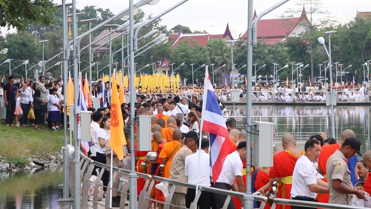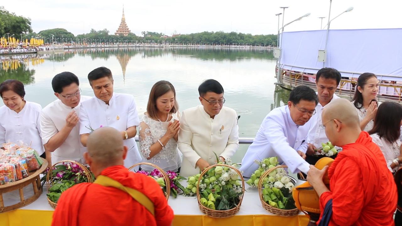 เมื่อเวลา 07.00 น. วันที่ 6 ต.ค. 60 บนสะพานราชพฤกษ์วิถี อ.เมือง จ.ขอนแก่น นายสมศักดิ์ จังตระกุล ผู้ว่าราชการจังหวัดขอนแก่น นำประชาชนทุกหมู่เหล่า ร่วมกันตักบาตรเทโว บนสะพานราชพฤกษ์วิถี ข้ามบึงแก่นนคร ความยาวกว่า 400 เมตร เนื่องในวันแรม 1 ค่ำ เดือน 11 วันออกพรรษา โดยมีพระภิกษุสงฆ์-สามเณร จากวัดต่างๆ ในเขตเทศบาลนครขอนแก่น มารับบิณฑบาตเกือบ 200 รูป เพื่อความเป็นสิริมงคล และความผาสุกของประชาชนในจังหวัดขอนแก่น