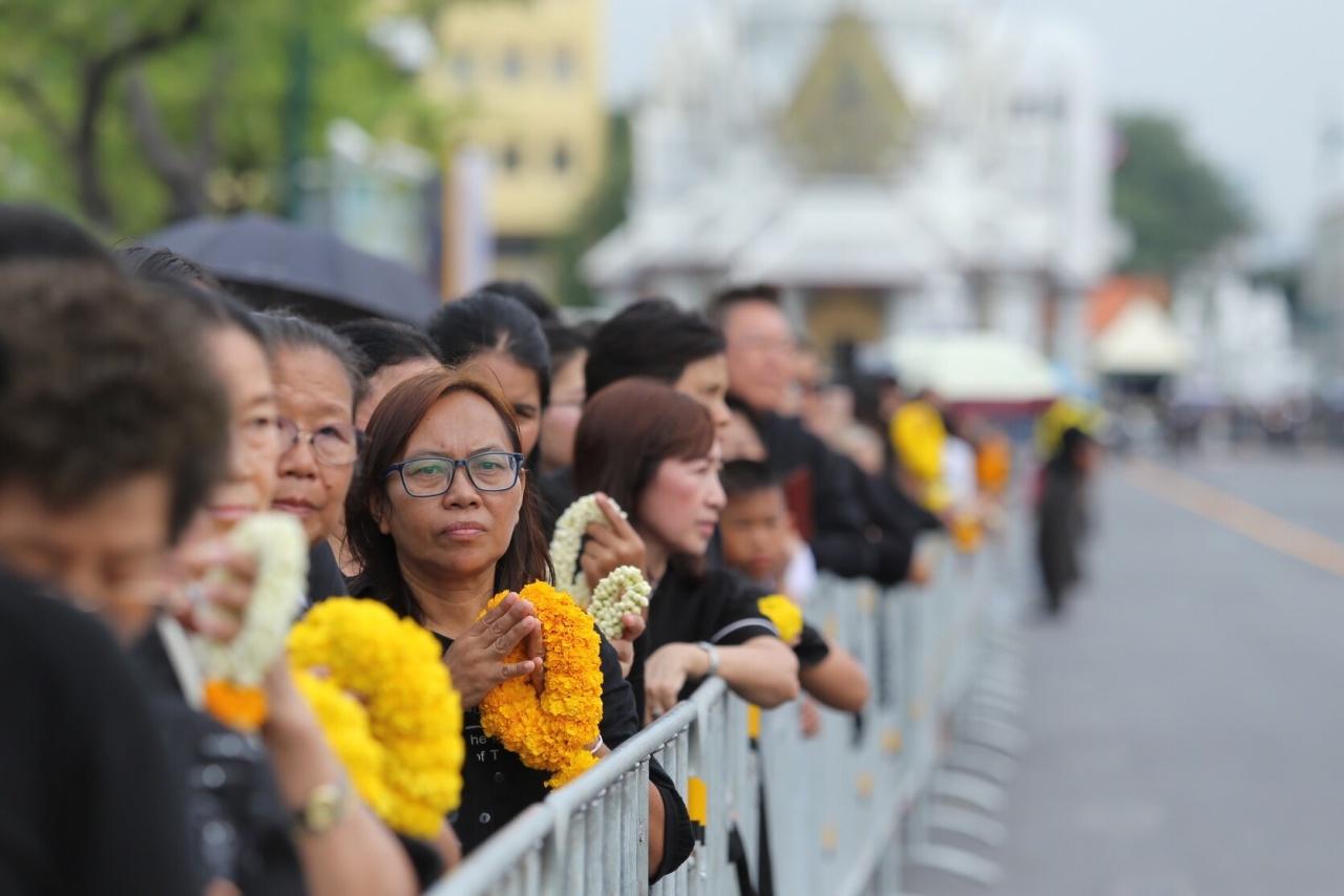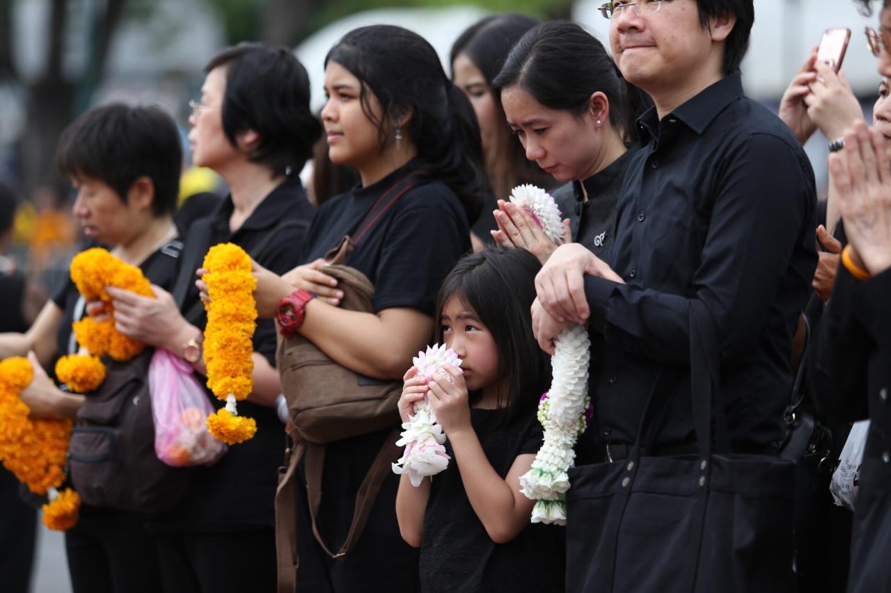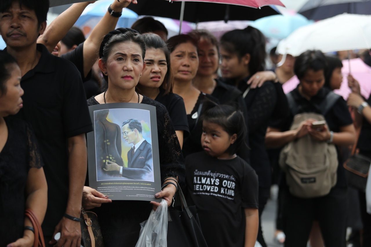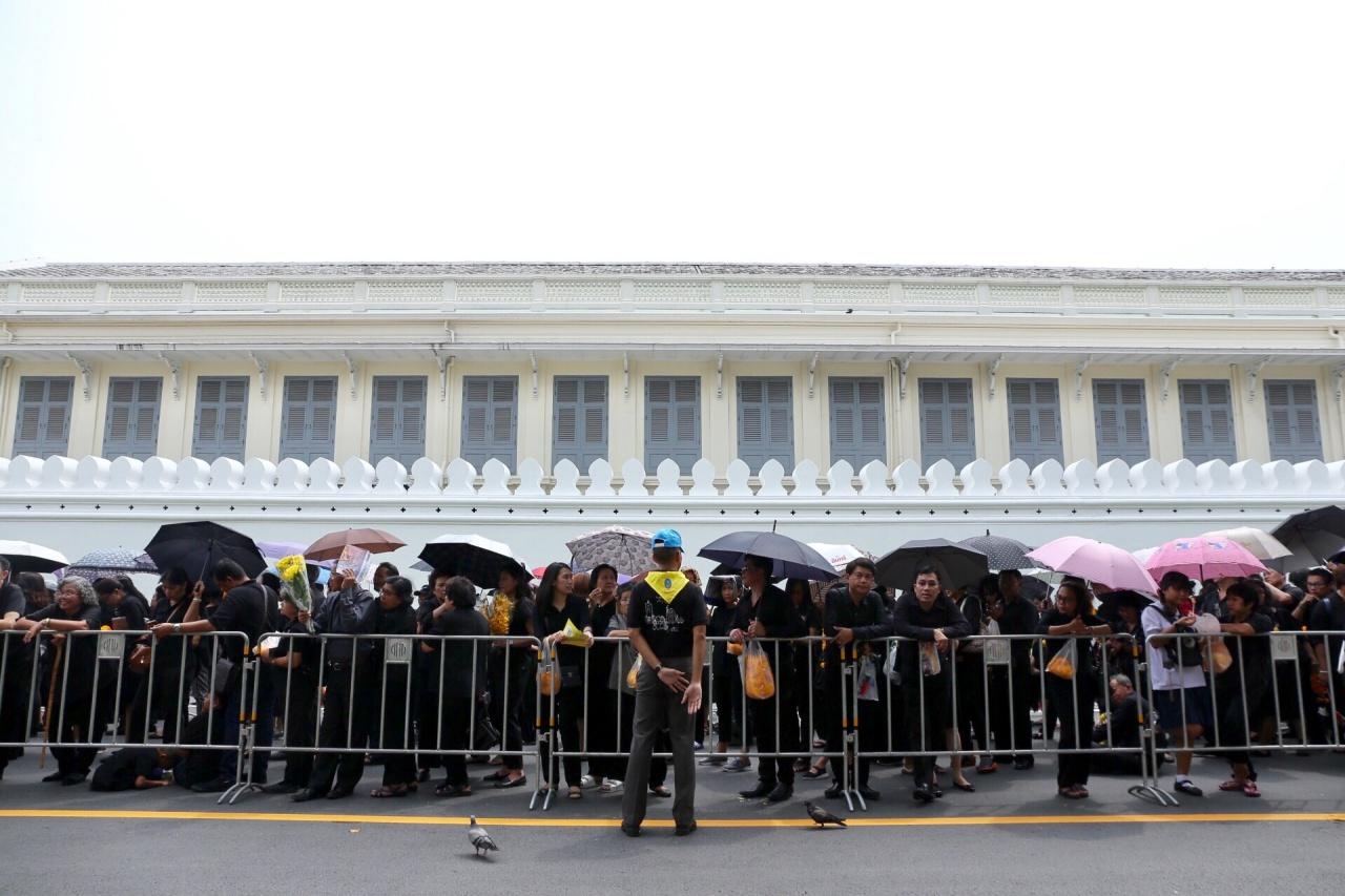 เมื่อวันที่ 13 ต.ค.2560 ประชาชนจากทั่วสารทิศ ทยอยเดินทางมายังสนามหลวง เพื่อต่อแถวเข้าถวายพวงมาลัย-ดอกไม้สดเบื้องหน้าพระบรมฉายาลักษณ์พระบาทสมเด็จพระปรมินทรมหาภูมิพลอดุลยเดช ที่หน้าพระบรมมหาราชวัง อย่างต่อเนื่องไม่มีขาดสาย ท่ามกลางสายฝนที่โปรยปราย โดยมีการอำนวยความสะดวกของจิตอาสา และเจ้าหน้าที่สำนักพระราชวังช่วยเหลืออย่างใกล้ชิด