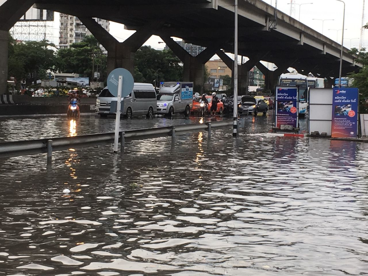 ขณะที่ถนนสายต่างๆทั่วกทม.ก็มีรายงานน้ำท่วมขังหลายสาย อาทิ ถนนรัชดาภิเษก แยกลาดพร้าวตัดรัชดา น้ำท่วมถึงฟุตบาท ห้วยขวาง ดินแดง ถนนแจ้งวัฒนะ ลงจากสะพานพระราม4 มุ่งหน้าแยกปากเกร็ด รถเล็กห้ามผ่าน