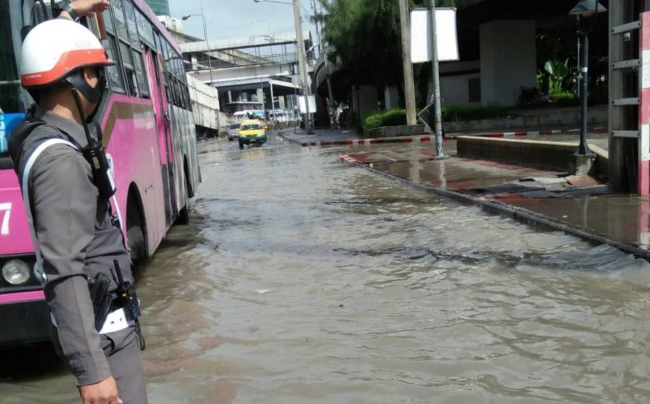 ขณะที่เจ้าหน้าที่สำนักการระบายน้ำ เจ้าหน้าที่เทศกิจ และตำรวจจราจร สน.พหลโยธิน มาร่วมกันอำนวยความสะดวกด้านการจราจร ให้กับผู้ใช้เส้นทาง บริเวณด้านหน้าสถาบันพัฒนาข้าราชการตุลาการศาลยุติธรรม เพราะมีปริมาณน้ำท่วมขังสูงเช่นกัน