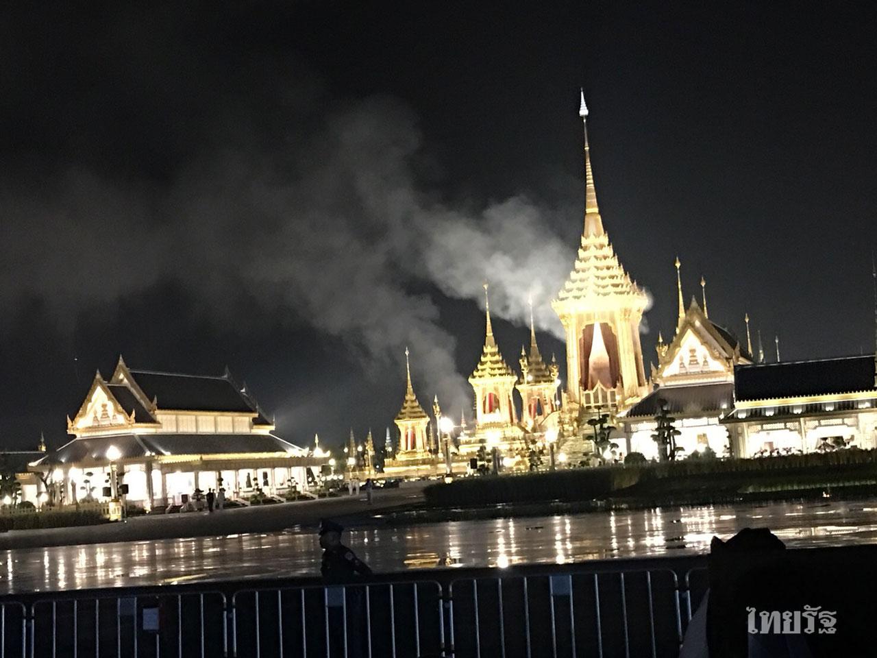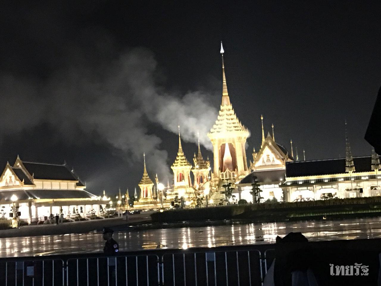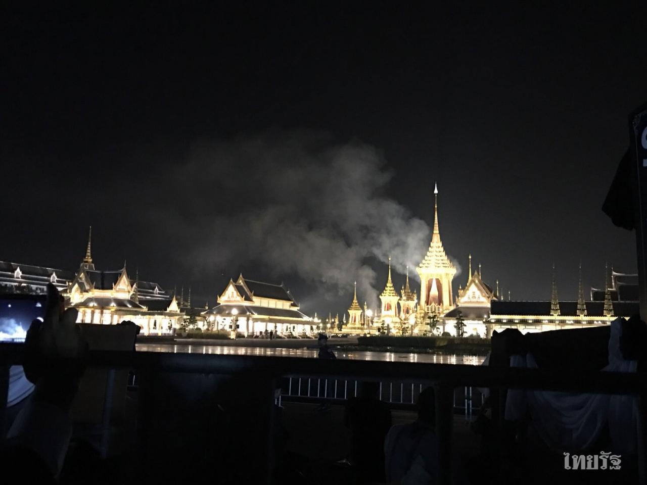 ประมวลภาพนาทีกลุ่มควันสีขาวพวยพุ่งออกจากพระเมรุมาศขึ้นสู่ท้องฟ้า ในพระราชพิธีถวายพระเพลิงพระบรมศพ พระบาทสมเด็จพระปรมินทรมหาภูมิพลอดุลยเดช บรมนาถบพิตร.