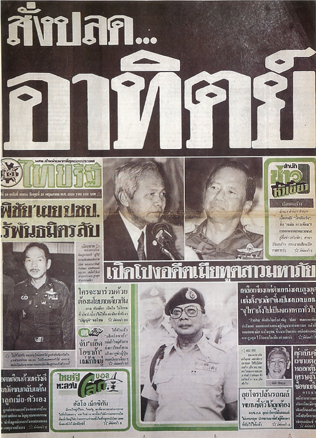 พาดหัวฉบับนี้ ถูกตีพิมพ์ในวันที่ 27 พฤษภาคม พ.ศ. 2529 ในสมัยที่ พลเอกเปรม ติณสูลานนท์ เป็นนายกรัฐมนตรี และได้สั่งปลด พลเอกอาทิตย์ กำลังเอก ออกจากตำแหน่งผู้บัญชาการทหารบก ให้เหลือเพียงแค่ผู้บัญชาการทหารสูงสุดตำแหน่งเดียว ส่งผลให้ยอดขายของฉบับนี้พุ่งพรวดจากเดิมไปหลายสิบเปอร์เซ็นต์