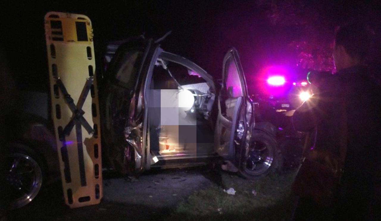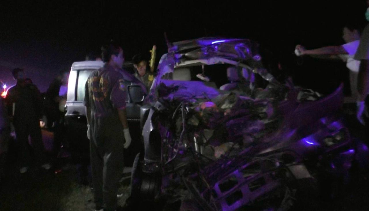 ที่เกิดเหตุพบรถกระบะยี่ห้อเชฟโรเลต สีน้ำตาล ทะเบียน บษ655 สุพรรณบุรี สภาพรถด้านหน้าพังยับ ที่นั่งคนขับพบศพนายณัฐพงษ์ สมใจเพ็ง อายุ 25 ปี อยู่ที่ต.รั้วใหญ่ อ.เมือง จ.สุพรรณบุรี ซึ่งใส่เสื้อเชิ้ตแขนยาวสีขาว ใส่กางเกงยีนส์ขายาว คอหักเนื่องจากถูกกระแทกอย่างแรง เสียชีวิตคาพวงมาลัย และแอร์แบ็กที่ทำงานขณะชนท้ายรถพ่วง ตรวจสอบพบบัตรประจำตัวราชการ ผู้ตายมีตำแหน่งเป็นนายช่างสำรวจ ของกรมชลประทาน เจ้าหน้าที่จึงรวบรวมหลักฐานเพื่อติดต่อประสานงานกับญาติให้มายืนยันตัวผู้ตายต่อไป และห่างออกไปประมาณ 100 เมตร พบรถพ่วงยี่ห้อฮีโน่ สีขาว ตัวแม่ ทะเบียน 70-4994 ตัวลูก 70-4995 เชียงราย จอดสภาพลูกพ่วงถูกชน พร้อมกันชนของรถกระบะติดอยู่