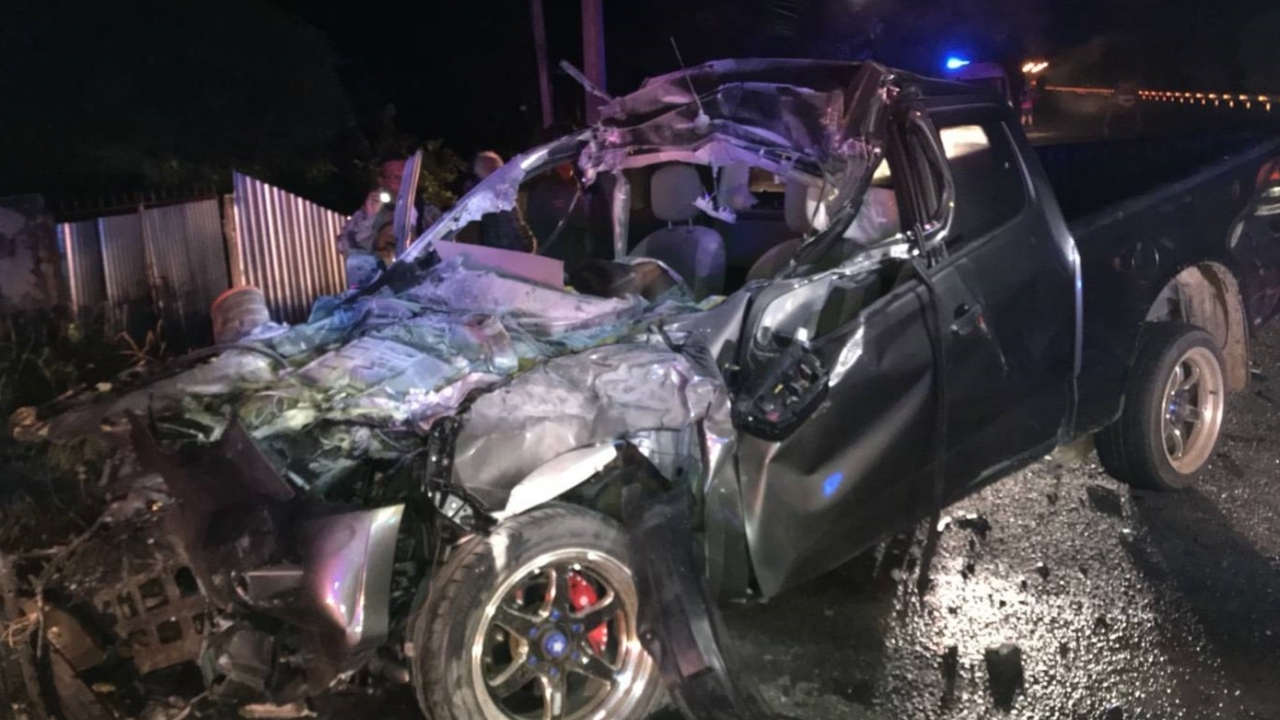 รถกลายเป็นซาก...หนุ่มช่างสำรวจ กรมชลประทาน ควบกระบะท่ามกลางความมืด บนถนนสายชัยนาท-สุพรรณบุรี ประสบอุบัติเหตุชนท้ายรถพ่วงเต็มแรง จนคอหัก เสียชีวิตคาพวงมาลัย และแอร์แบ็กที่ทำงาน
