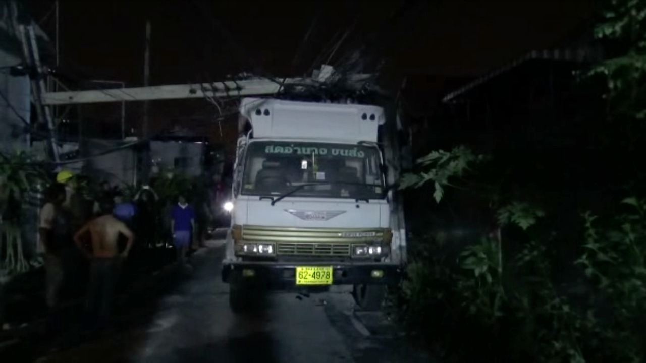 รถบรรทุก 10 ล้อเจ้ากรรมเข้าสมเด็จเจ้าพระยา ซอย 5 แต่มีรถจอดถนนแคบจนขับเบียดเสาไฟฟ้าหัก เกี่ยวเสาไฟฟ้าหัก ทำให้ไฟฟ้าดับทั้งซอย ย่านท่าดินแดง จนท.การไฟฟ้าเร่งซ่อมคาดว่าใช้เวลาทั้งคืน...