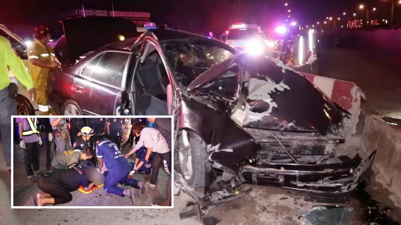 หนุ่ม กทม.วัย 32 ปี ขับเก๋งขึ้นสะพานข้ามคลอง พุ่งเหินไปชนแบริเออร์ริมทางถนนเลียบวงแหวนรอบนอก ฝั่งตะวันออก รถพังยับบาดเจ็บสาหัส ทีมกู้ชีพพยายามปั๊มหัวใจยื้อชีวิตกว่า 20 นาที แต่ไม่สำเร็จ เสียชีวิตในที่สุด...