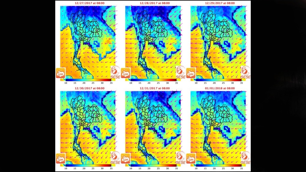 สจล. พยากรณ์อากาศประเทศไทย วิเคราะห์สภาพอากาศวันที่ 31 ธ.ค.-1ม.ค.61 คาดว่าจะไม่หนาวไปกว่าวันที่ 28 ธ.ค.60 ที่ภาคเหนือและภาคใต้ฝั่งอ่าวไทยจะเย็นขึ้นมากที่สุด...