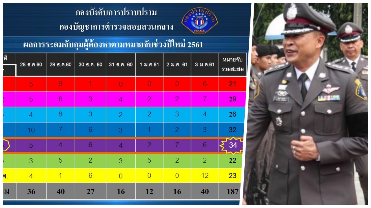 ผู้การกองปราบสั่งระดมตำรวจในสังกัดทุกชุด ห้ามตำรวจหยุดปีใหม่ ลุยกวาดล้างตามหมายจับอาชญากรรม ได้ผู้ต้องหาทั้งสิ้น 187 ราย โดย กก.5 บก.ป. ทำสถิติจับกุมสูงสุด