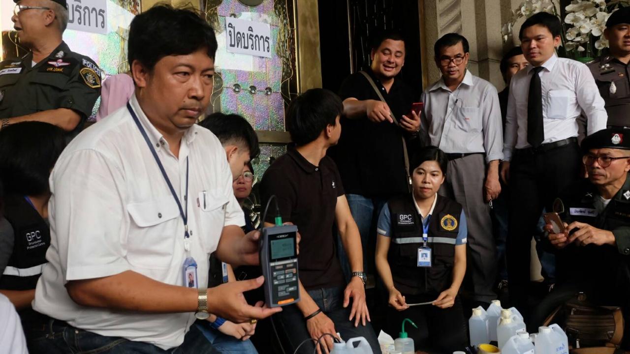 ลุยตรวจค้นอาบอบนวดเดอะลอร์ด รัชดา พบค่าเหนี่ยวนำมีน้ำประเภทอื่นผสมอยู่ จนท.นำน้ำภายในสถานบริการทั้งหมดเข้าแลปเพื่อตรวจอย่างละเอียดอีกครั้ง