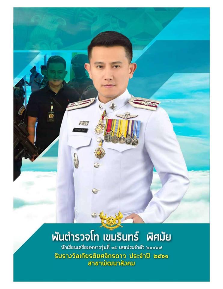 พ.ต.ท.เขมรินทร์ พิศมัย นักเรียนเตรียมทหาร รุ่นที่ 35 เลขประจำตัว 20067 รับรางวัลเกียรติยศจักรดาวประจำปี 2561 สาขาพัฒนาสังคม