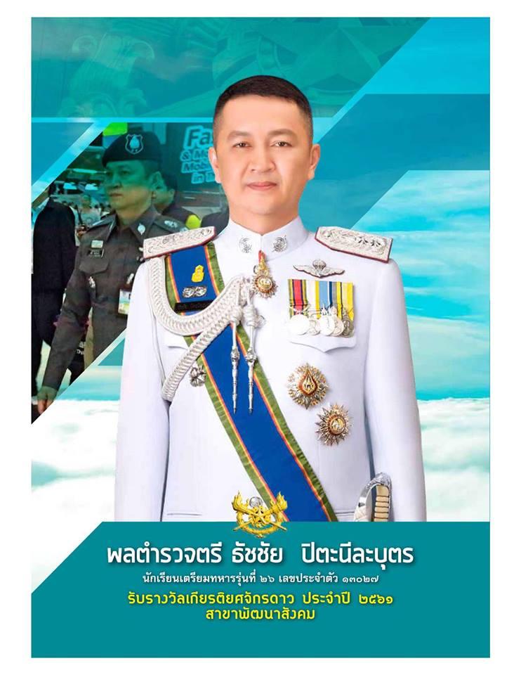 พล.ต.ต.ธัชชัย ปิตะนีละบุตร นักเรียนเตรียมทหาร รุ่นที่ 26 เลขประจำตัว 13027 รับรางวัลเกียรติยศจักรดาวประจำปี 2561 สาขาพัฒนาสังคม