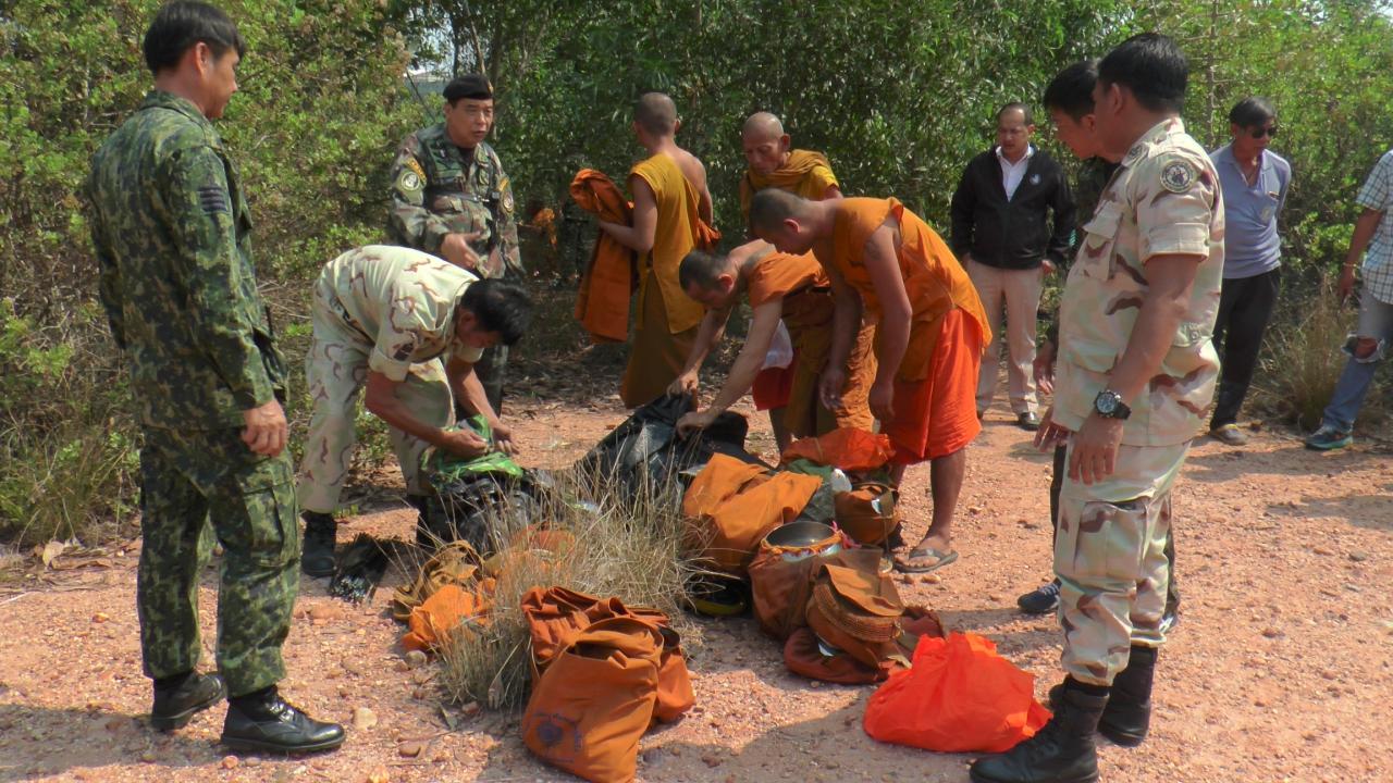 จากการตรวจสอบบริเวณที่พัก ยังพบอาหารคาวหวานและน้ำดื่ม รวมทั้งข้าวสารอาหารแห้งจำนวนมากวางอยู่ในเต็นท์และแขวนไว้ตามต้นไม้รอบๆ ที่พัก พบเศษกระดาษ เศษกระป๋อง ขวดน้ำดื่มถูกโยนทิ้งระเกะระกะ นอกจากนี้ยังพบมูลอุจจาระอยู่ในละแวกที่พักหลายแห่ง จากนั้นจึงนิมนต์พระทั้ง 5 รูปมาสอบถาม เบื้องต้นทราบชื่อคือ 1.พระฮนดาวี อายุ 26 ปี 2.พระวนวาน อายุ 34 ปี 3.พระเผื้อะ อายุ 33 ปี 4.พระออม อายุ 73 ปี และพระเตียวพา อายุ 65 ปี ทั้งหมดเป็นสัญชาติกัมพูชา