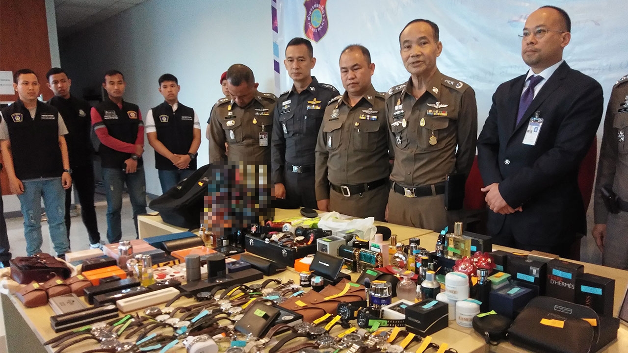 นายศรายุธ สุขทอง อายุ 26 ปี ตำแหน่งพนักงานขับรถ นายวรากร สิงขรณ์ อายุ 32 ปี ตำแหน่งพนักงานขับรถ นายอธิวัฒน์ มณีนพ อายุ 27 ปี ตำแหน่งพนักงานขนถ่ายสัมภาระ นายบุญเลิศ อุปสัย ตำแหน่งพนักงานขนถ่ายสัมภาระ นายณัฐพล จาดโห้ อายุ 28 ปี ตำแหน่งพนักงานขนถ่ายสัมภาระ นายวิษณุ รำมะนา อายุ 21 ปี ตำแหน่งพนักงานขนถ่ายสัมภาระ ของกลางเป็นสินค้าแบรนด์เนมจำพวกนาฬิกา น้ำหอม กระเป๋า เครื่องสำอาง รวม 181 รายการ มูลค่าประมาณ 1 ล้านบาท โดยจับกุมได้ที่ สภ.ท่าอากาศยานสุวรรณภูมิ (ส่วนหลัง) ต.หนองปรือ อ.บางพลี จ.สมุทรปราการ