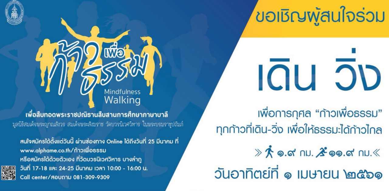 กลุ่มคณะศิษย์วัดบวรนิเวศวิหาร ชวนร่วมกิจกรรม งานเดินวิ่งการกุศล “ก้าวเพื่อธรรม” 1เม.ย.นี้ รายได้มอบให้กับมูลนิธิสมเด็จพระญาณสังวร เพื่อส่งเสริมการศึกษาภาษาบาลี