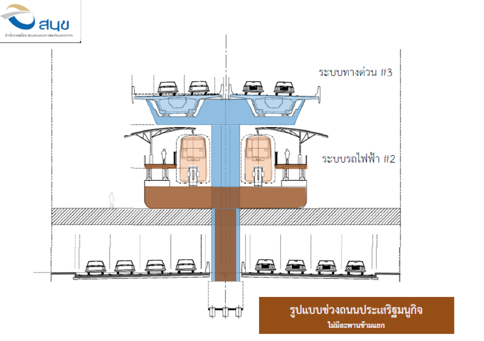 “โครงการนี้เป็นแผนเดิมที่กทพ.เตรียมไว้มานาน ไม่ใช่อย่างที่ชาวบ้านเข้าใจว่าเวนคืนที่มาเกิน และไม่ใช่ว่าเมื่อมีการฟ้องร้องแล้ว การทางฯ ถึงได้รื้อฟื้นโครงการ ที่ผ่านมามีการพยายามดำเนินการก่อสร้าง มีการปรับรูปแบบ อย่างล่าสุดก็ปรับรูปแบบที่เคยเสนอไว้ 6 ช่องจราจร เหลือ 4 ช่องจราจรในแผนล่าสุดนี้ และออกแบบก่อสร้างให้ทางยกระดับนี้สูงขึ้นจากเดิม เพื่อรองรับรถไฟฟ้าสายสีน้ำตาลด้วย และให้จุดที่เป็นอินเตอร์เชนจ์ ทางขึ้นลง มีด่านเก็บเงินด้านบน บนที่ดินกว่า 100 ไร่ที่เวนคืนไว้อยู่แล้ว”