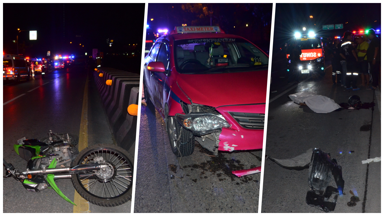 หนุ่มวัย 21 ปี ขี่จยย.แบบวิบาก เสียหลักข้ามเลน ชนที่กั้นกลางสะพานข้ามแยกรัชวิภา รถแท็กซี่รับผู้โดยสารมาจากหมอชิต วิ่งมาพอดี เบรกไม่ทันชนเสียชีวิตคาที่
