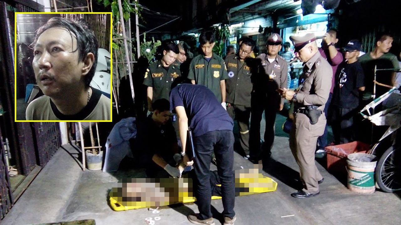 เจ้าหน้าที่ชันสูตรศพนายโอภาส กาญจนเกรียงไกร ถูกนายกิตติพงศ์ ศุภศักดิ์ธำรง หลาน (ภาพเล็ก) ฆ่าอย่างโหดเหี้ยม เพราะโมโหน้าชอบดูโทรทัศน์และไอเสียงดังรบกวนพ่อ เป็นอัมพาตไม่ได้นอนพักผ่อน.
