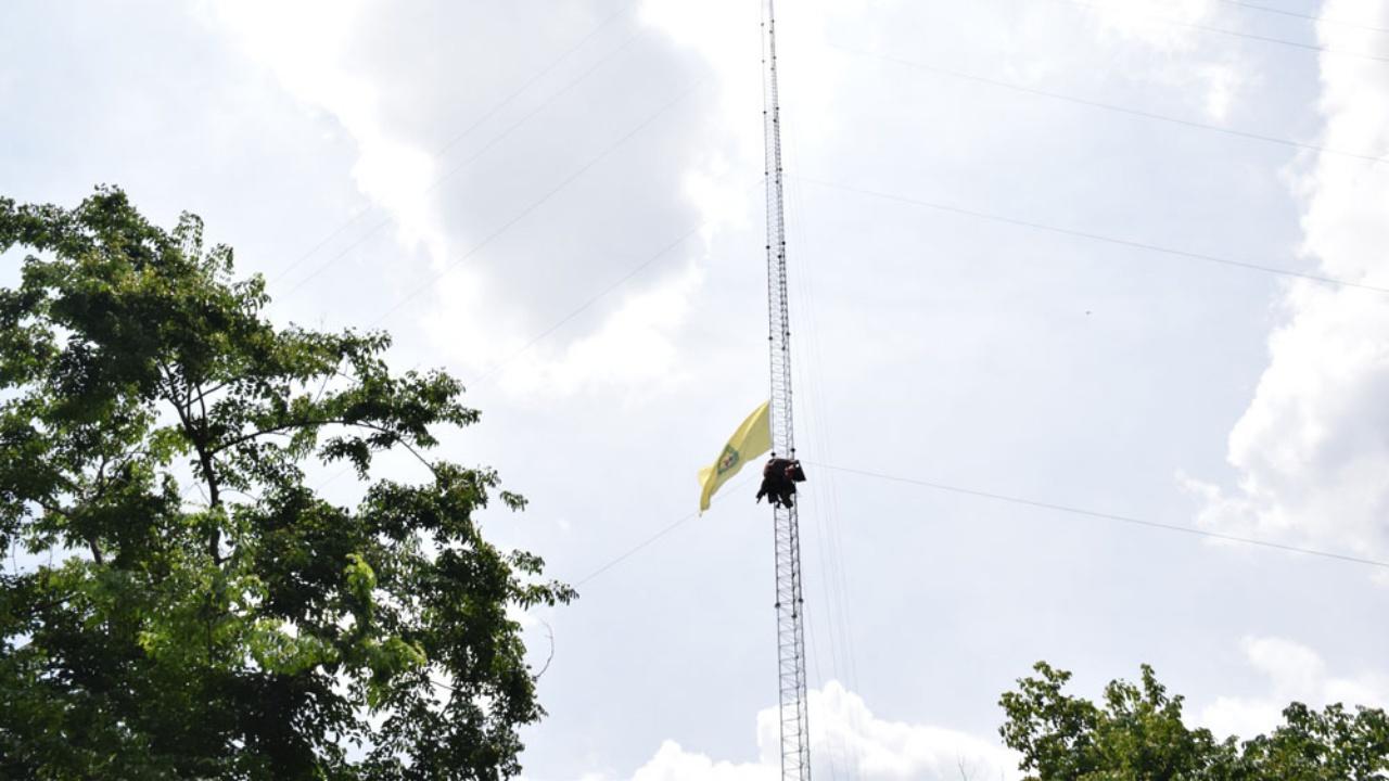 พระสำนักสงฆ์ดัง ปีนเสาส่งสัญญาณ บอก จะขึ้นไปปฏิบัติธรรม 10 วัน ไม่ยอมลงมา คาดเครียดเรียกร้องแบงก์คืนที่ดิน ที่ใช้สร้างสำนักสงฆ์ ซึ่งเดิมเป็นที่รกร้างของเอกชน แต่ติดหนี้ธนาคารแล้วถูกยึด