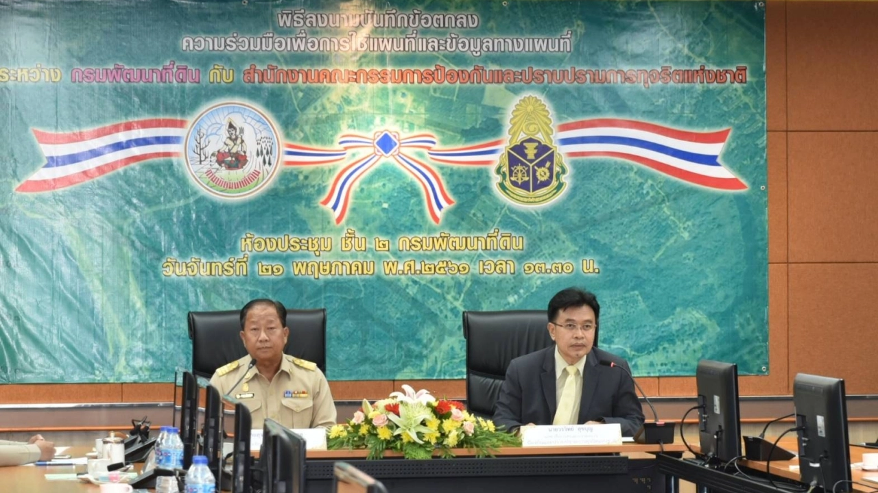กรมพัฒนาที่ดิน ร่วมลงนามบันทึกข้อตกลงความร่วมมือกับสำนักงานคณะกรรมการป้องกันและปราบปรามการทุจริตแห่งชาติ (ป.ป.ช.) เพื่อความร่วมมือในการใช้แผนที่ และ/หรือข้อมูลทางแผนที่ในการปฏิบัติงานตามภารกิจของแต่ละหน่วยงาน...
