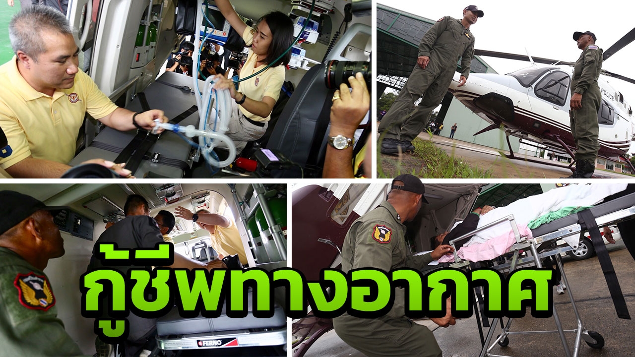 โรงพยาบาลตำรวจ ถอดบทเรียน 13 หมูป่า ติดถ้ำหลวง จ.เชียงราย มาสาธิตการเคลื่อนย้ายช่วยเหลือผู้ป่วยภาวะฉุกเฉินเสมือนจริงทางอากาศ สาธิตการกู้ชีพฉุกเฉินทางอากาศ ด้วย ฮ.เบลล์ 429 และรถพยาบาล...