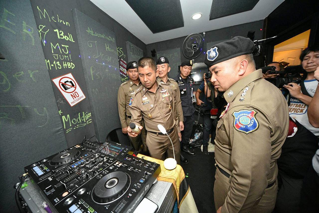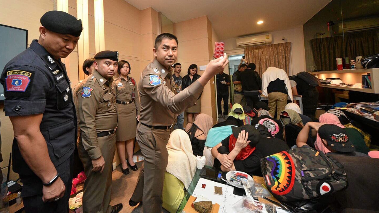 ตำรวจสนธิกำลังทลายแหล่งปาร์ตี้ยาเสพติด เปิดเผยเมื่อเวลา 17.30 น. วันที่ 18 ส.ค. พล.ต.ต.สุรเชษฐ์ หักพาล รอง ผบช.ทท. พล.ต.ต.ธีระพงษ์ วงษ์รัฐพิทักษ์ ผบก.น.4 นำกำลังตำรวจ บช.ทท. บก.สปพ.บก.น.4 และตำรวจศูนย์ปราบปรามอาชญากรรมทางเทคโนโลยีสารสนเทศ สำนักงานตำรวจแห่งชาติ (ศปอส.ตร.) กว่า 30 นาย เข้าตรวจค้นบ้านเลขที่ 290/173 หมู่บ้านกลางเมือง เอสเซ้นส์ ซอยลาดพร้าว 84 แขวงและเขตวังทองหลาง กทม. หลังสืบทราบมีการจัดปาร์ตี้ยาเสพติด